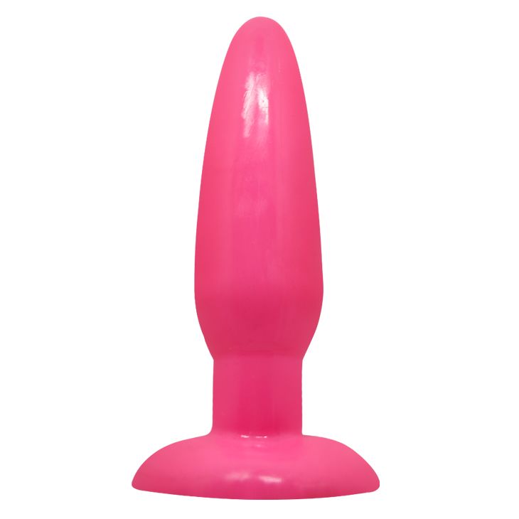-----Розовая анальная пробка с подошвой-присоской - 13,5 см.