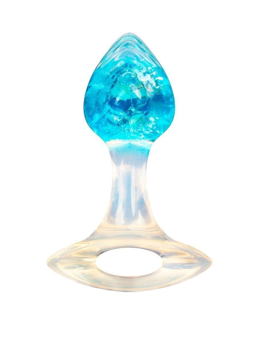 Голубоватая анальная пробка с ручкой - 8,5 см.