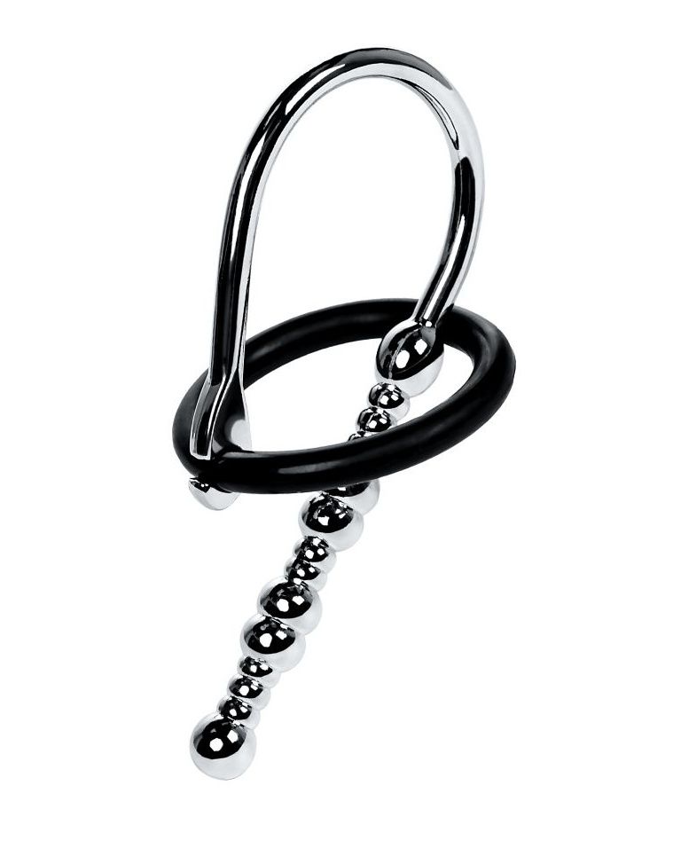 Серебристый уретральный плаг-бусины TOYFA Metal с мягким фиксириющим кольцом - lovestoryshop.ru