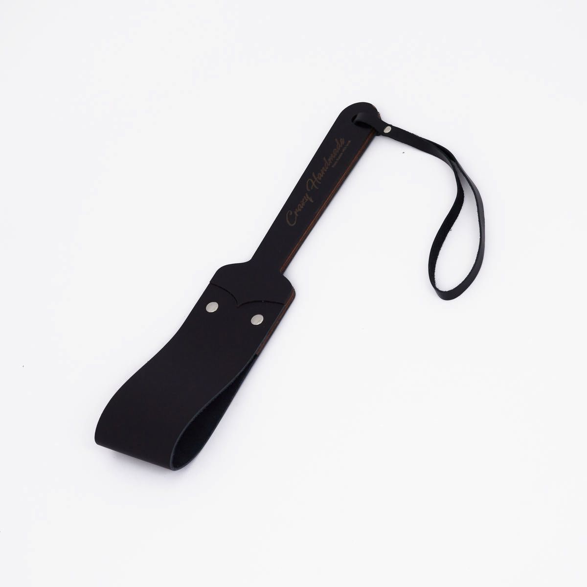 Черный кожаный паддл с деревянной ручкой - 34 см. - lovestoryshop.ru