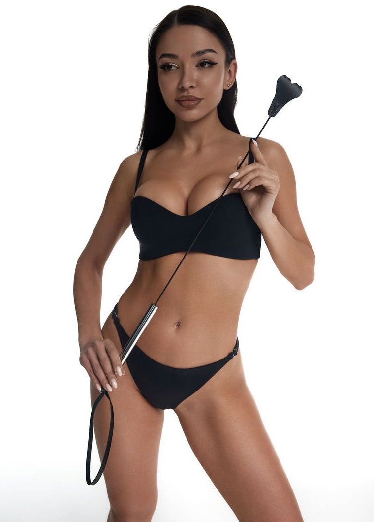 Стек с черным кожаным наконечником в виде сердца и металлической ручкой - 67 см. - lovestoryshop.ru
