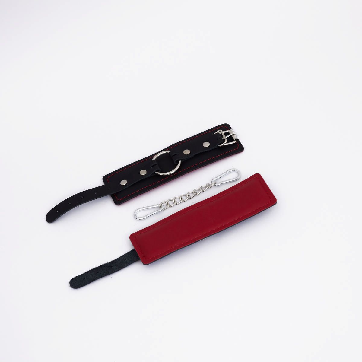 Черно-красные кожаные наручники - lovestoryshop.ru