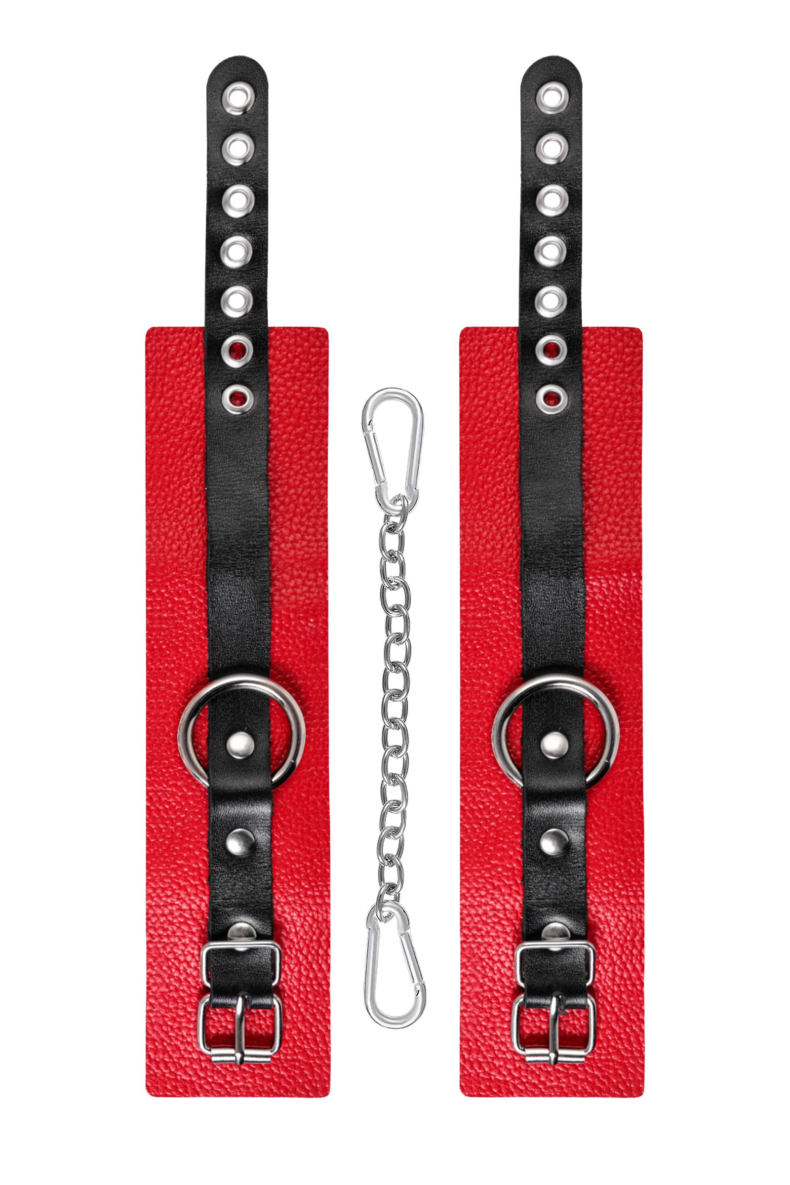 Мягкие Оковы с жёсткими ремешками от Pecado помогут обездвижить партнера во время сексуальных прелюдий или жестких БДСМ-играх. Оковы изготовлены полностью из красной, натуральной кожи. Ремешки выполнены из чёрной жёсткой кожи, украшены люверсами. Выделка материала произведена вручную. Ремешки и широкая манжета хорошо держат форму: не тянутся и не мнутся. Качественная металлическая фурнитура добавляет лоска изделию, а аромат натуральной кожи повышает градус возбуждения. Благодаря широкому запасу регулировок, можно подобрать необходимый обхват. Аксессуар удобно застегивать и легко расстегивать. При правильном использовании не оставляет следов на теле и не доставляет дискомфорта. Манжеты оков соединяется между собой помощью двух карабинов и съемной стальной цепочки. Подходит и для женских, и для мужских ног. Длина манжет - 25 см, ширина - 5,5 см.
