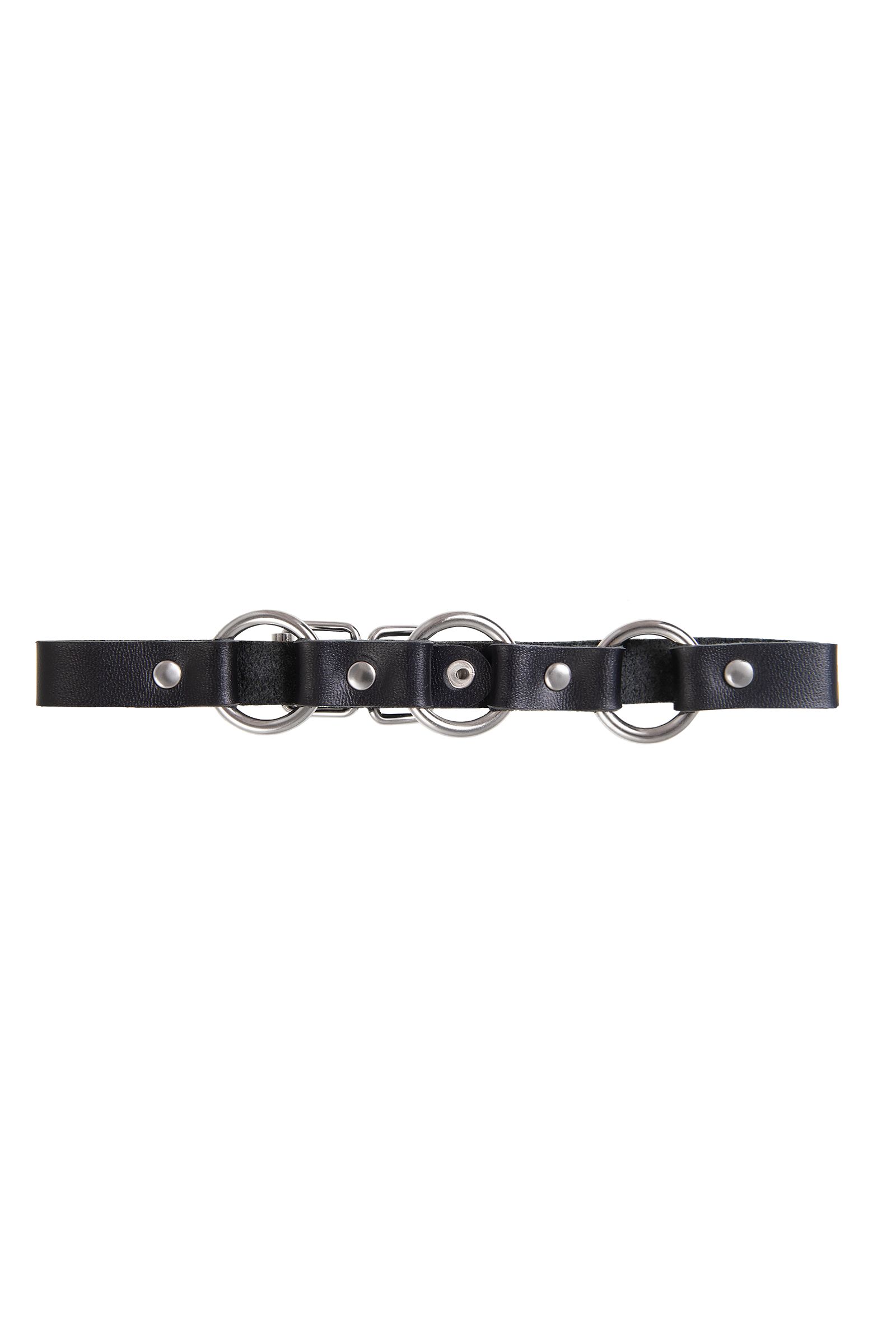 Черный кожаный чокер-ошейник с тремя кольцами