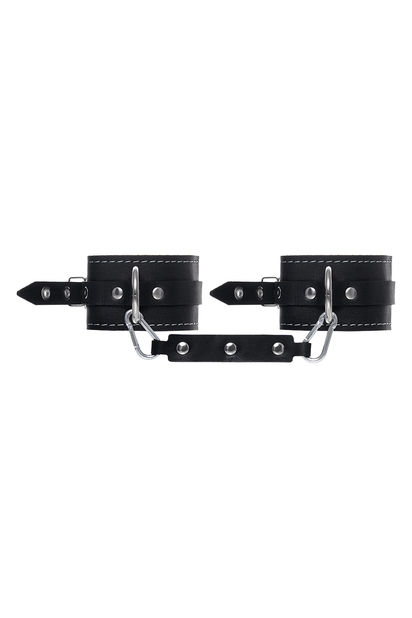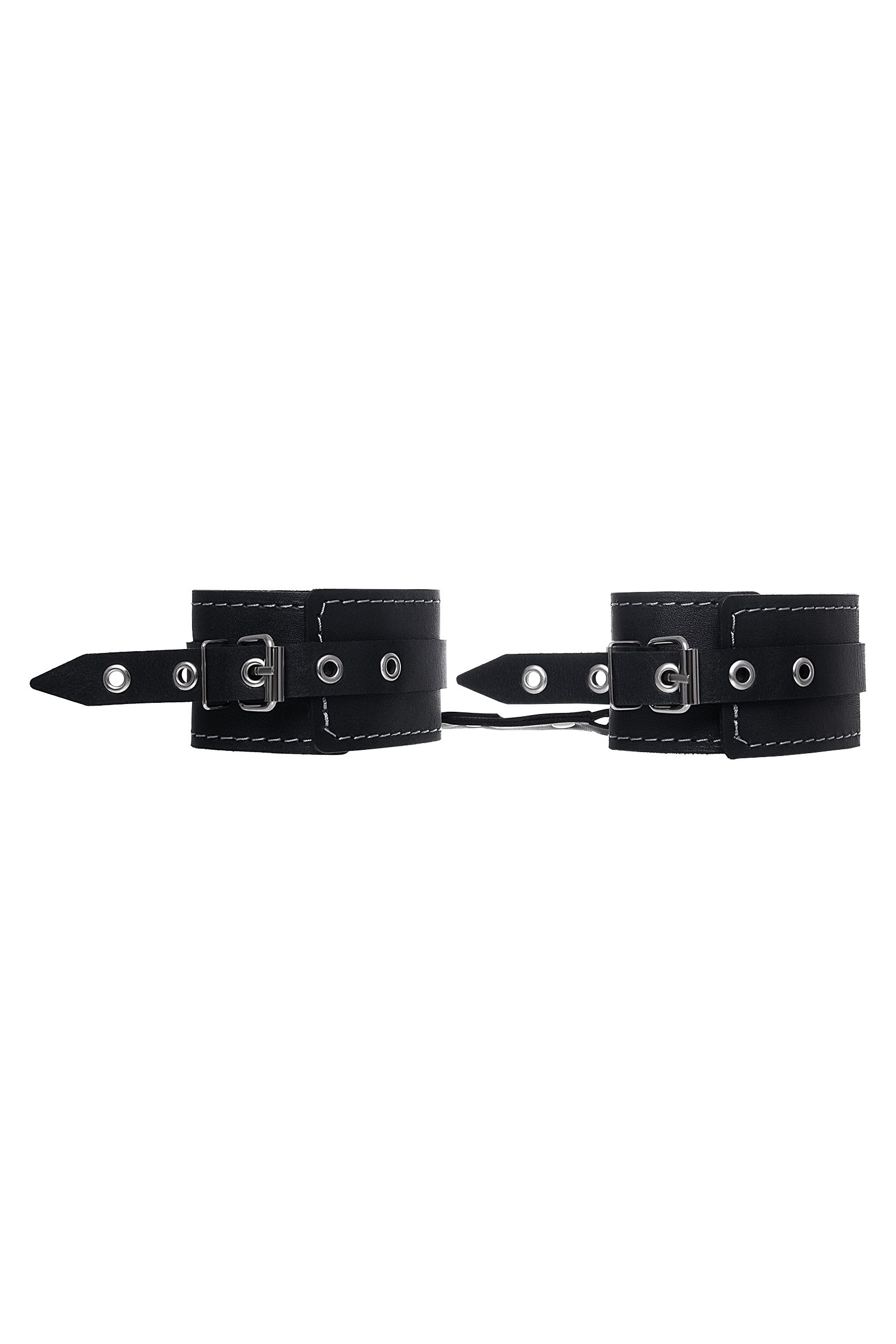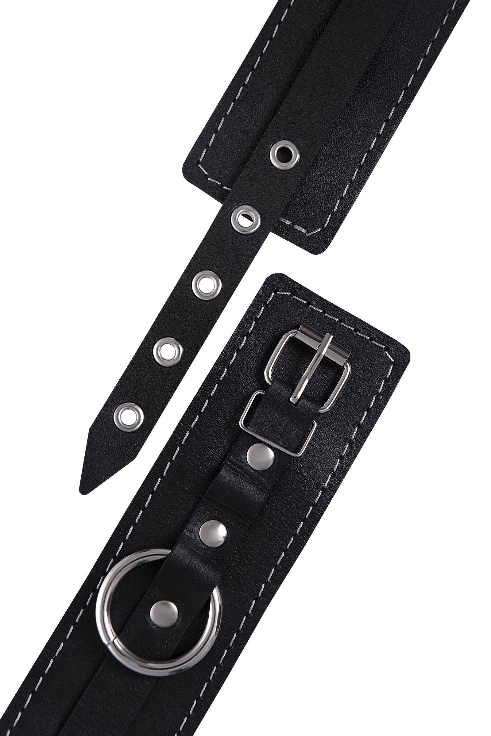 Готовы играть по-взрослому? Не бойтесь своих желаний! Основатели бренда уверены: лучший способ избавиться от искушения - поддаться ему! Добавьте пикантную деталь в ролевую игру и воплотите самую смелую сексуальную фантазию в реальность! Эти кожаные оковы с белой отстрочкой могут стать стильным аксессуаром, а могут послужить вашим целям по своему прямому назначению. Частичное обездвиживание и невозможность двигать руками или ногами дают вам полную власть над партнером! Наличие двух карабинов и колец позволяет использовать изделие как раздельно – аксессуар-манжеты, так и как оковы для фиксации. К широким металлическим кольцам также можно присоединить и другие аксессуары при помощи карабинов. Благодаря универсальному размеру оковы могут использоваться и мужчинами, и женщинами. Размер легко регулируется с помощью металлических пряжек, органично вписывающихся в общий стиль. Длина манжет - 25 см, ширина - 5,5 см.