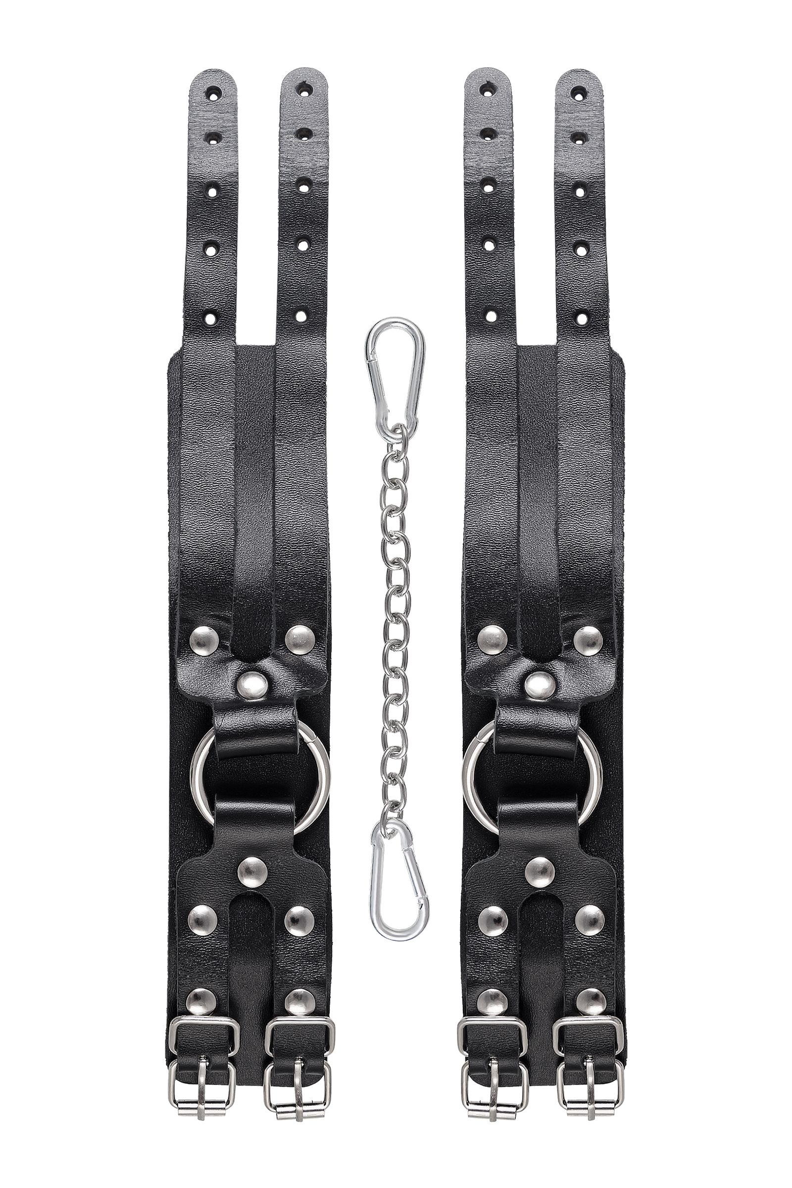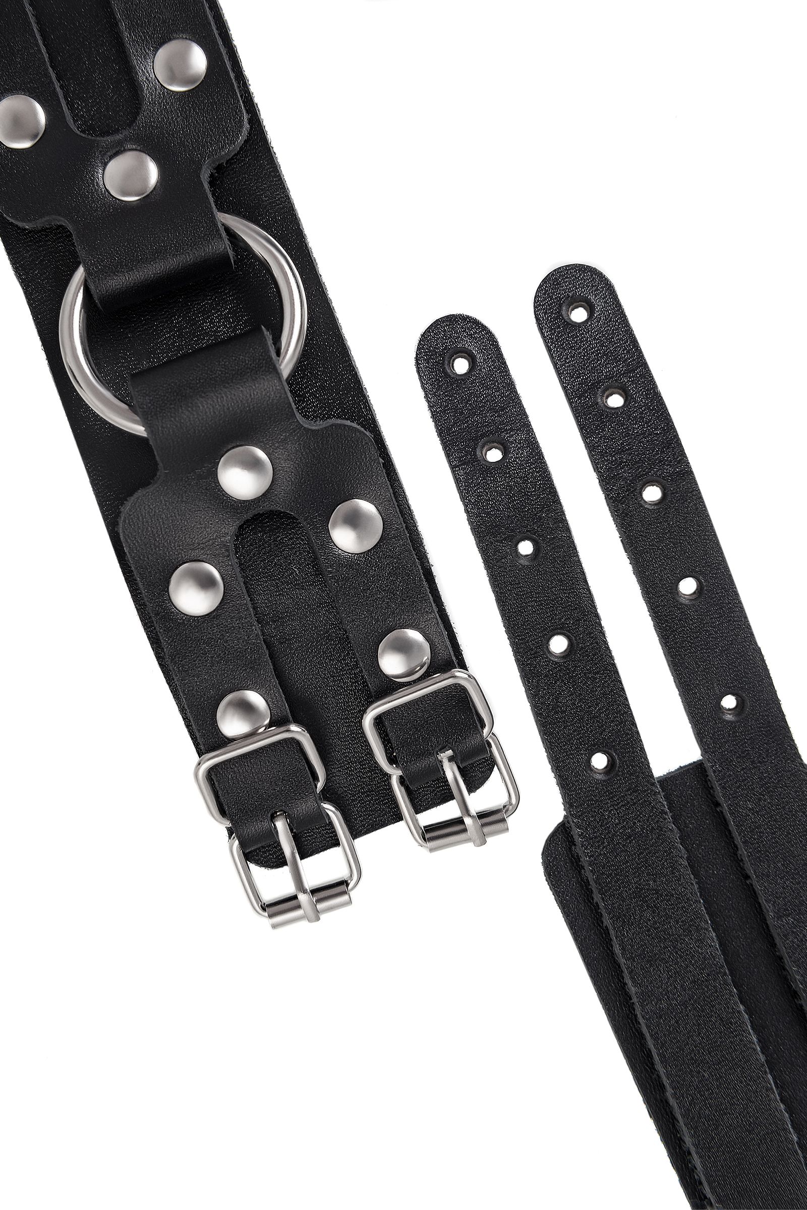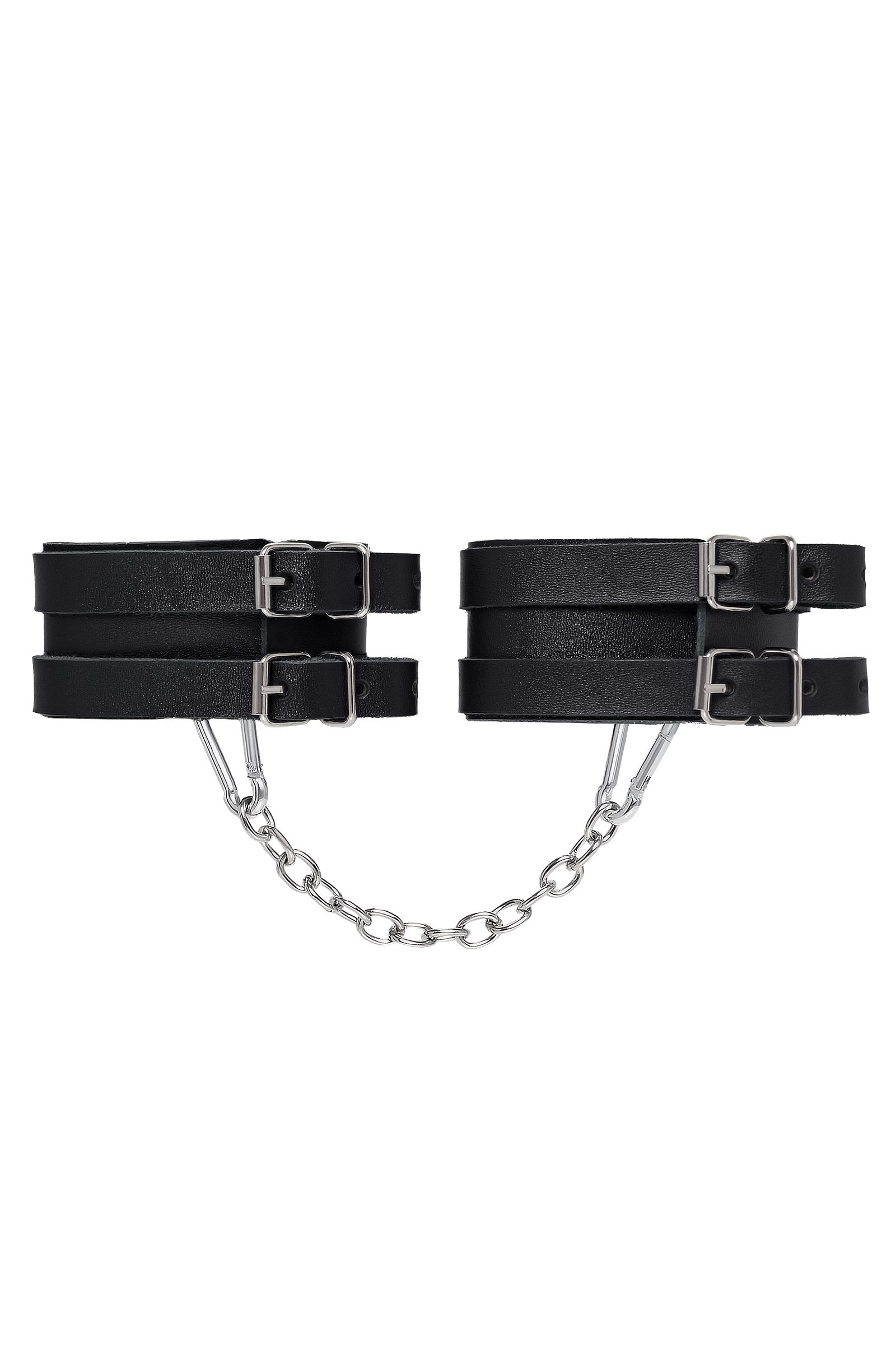 Черные кожаные оковы с двумя ремешками