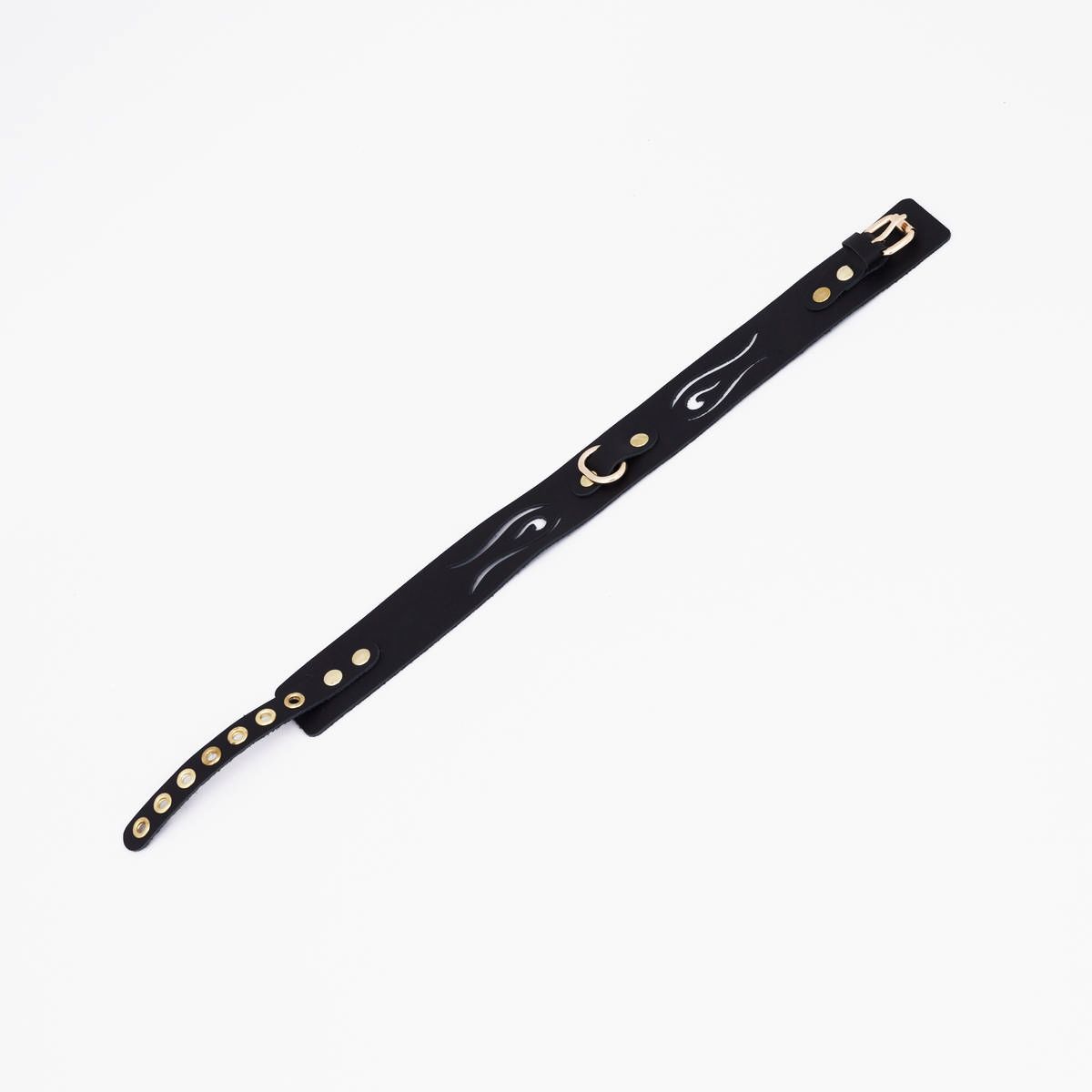 -----Черный кожаный ошейник с золотистой фурнитурой