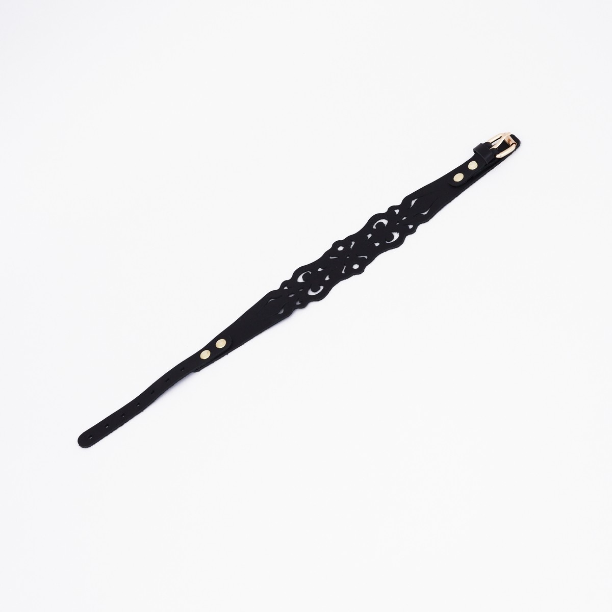 Чокер с узорным дизайном из натуральной кожи с золотой фурнитурой. Резные элементы придают атмосферу нежности, элегантности и подчеркивают красоту тела. Регулируется ремешком, поэтому прекрасно будет смотреться на любой шее. Доставляется в фирменной упаковке в виде брендированной деревянной подложки. Ширина основы - 5 см.