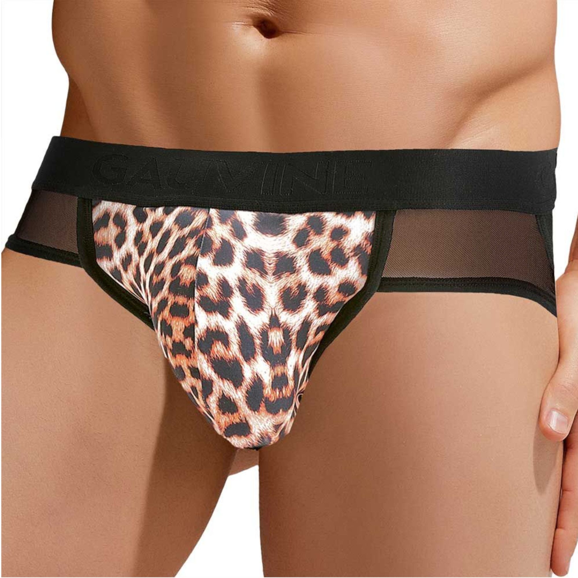 -----Сексуальные мужские трусы-джоки с леопардовой вставкой по центру