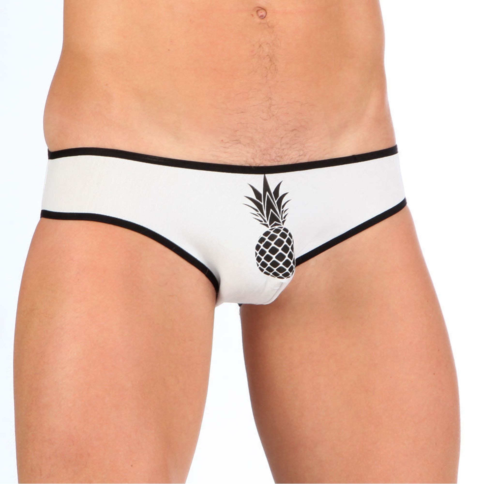 ОписаниеНабор из 3 эротических трусов-слипов с принтом-ананасом (белые, красные и желтые).