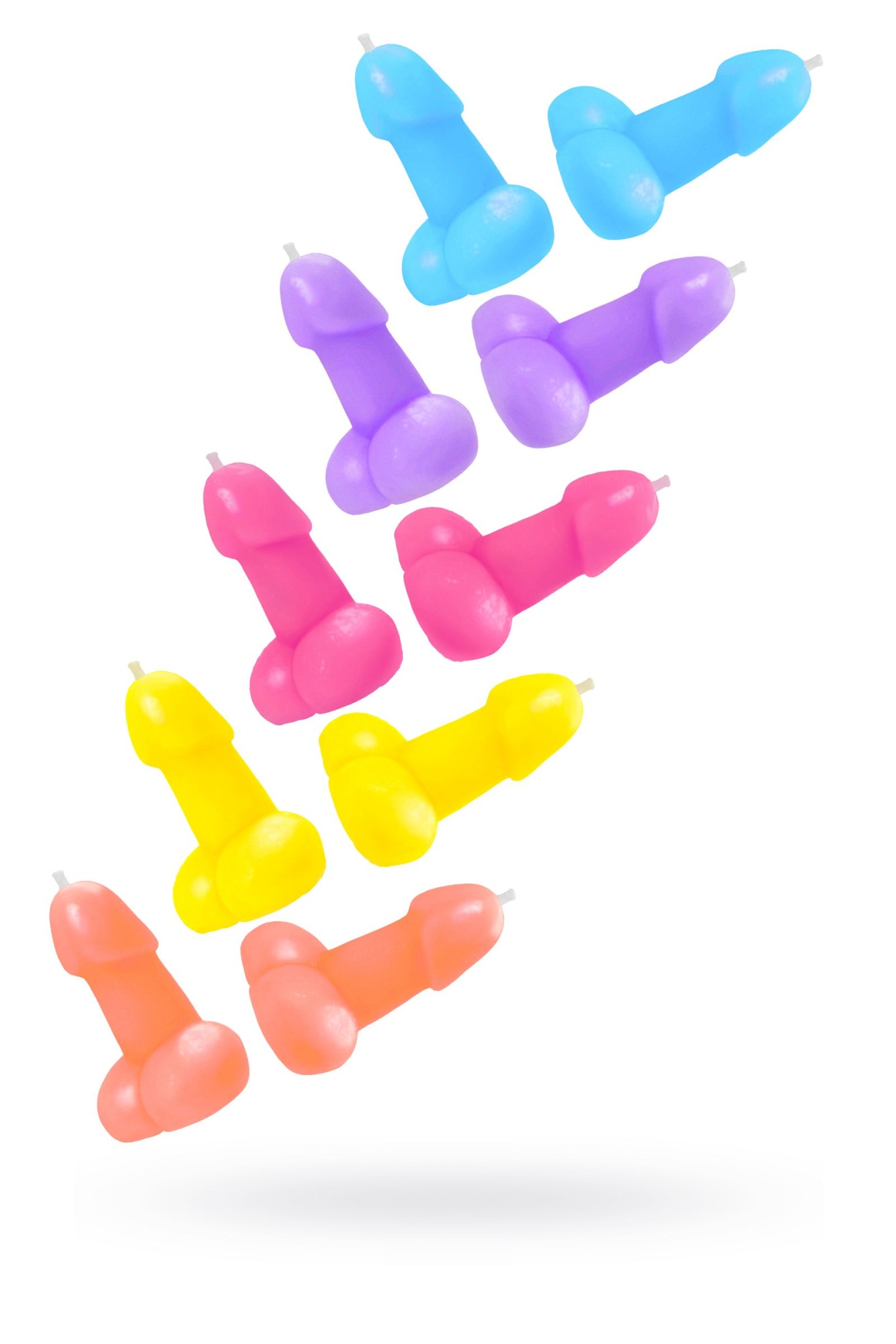 Набор из 10 разноцветных свечей в форме пениса
