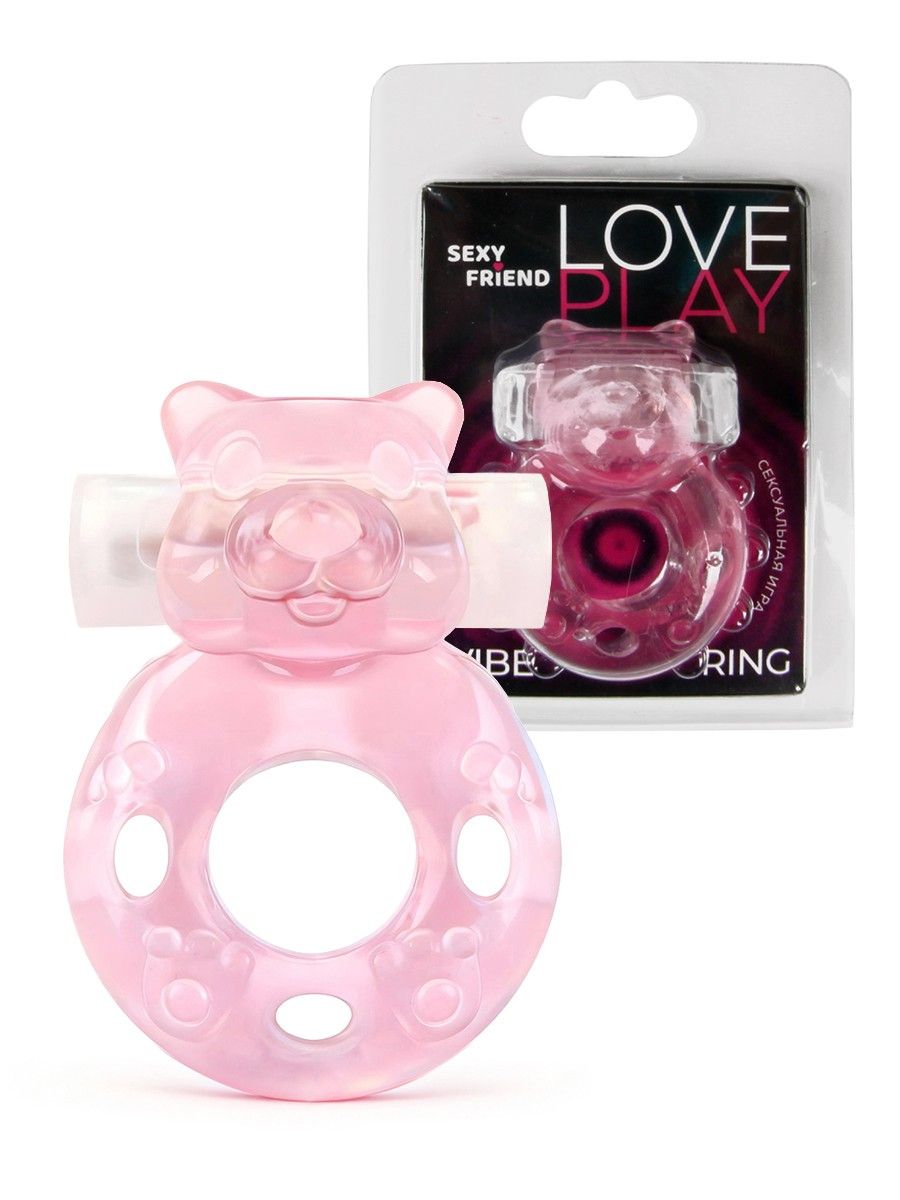 Розовое эрекционное виброкольцо в форме мишки