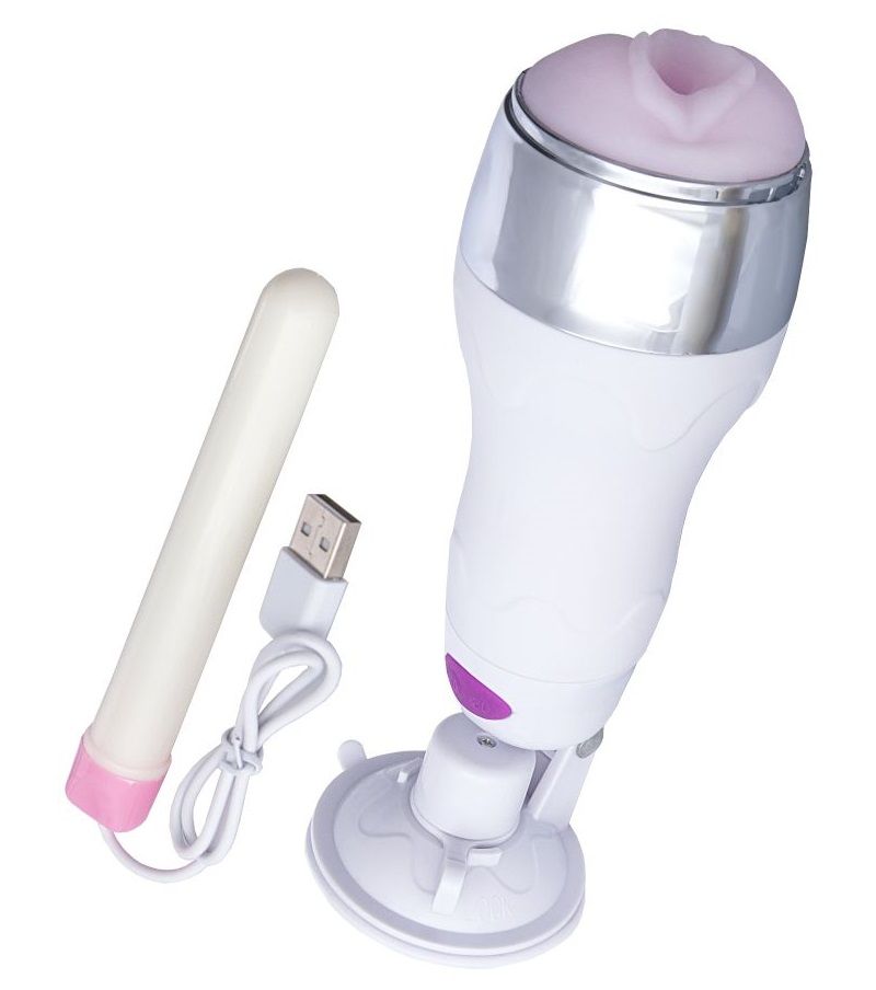 Мастурбатор-вагина в белой колбе с присоской и функцией нагрева - lovestoryshop.ru