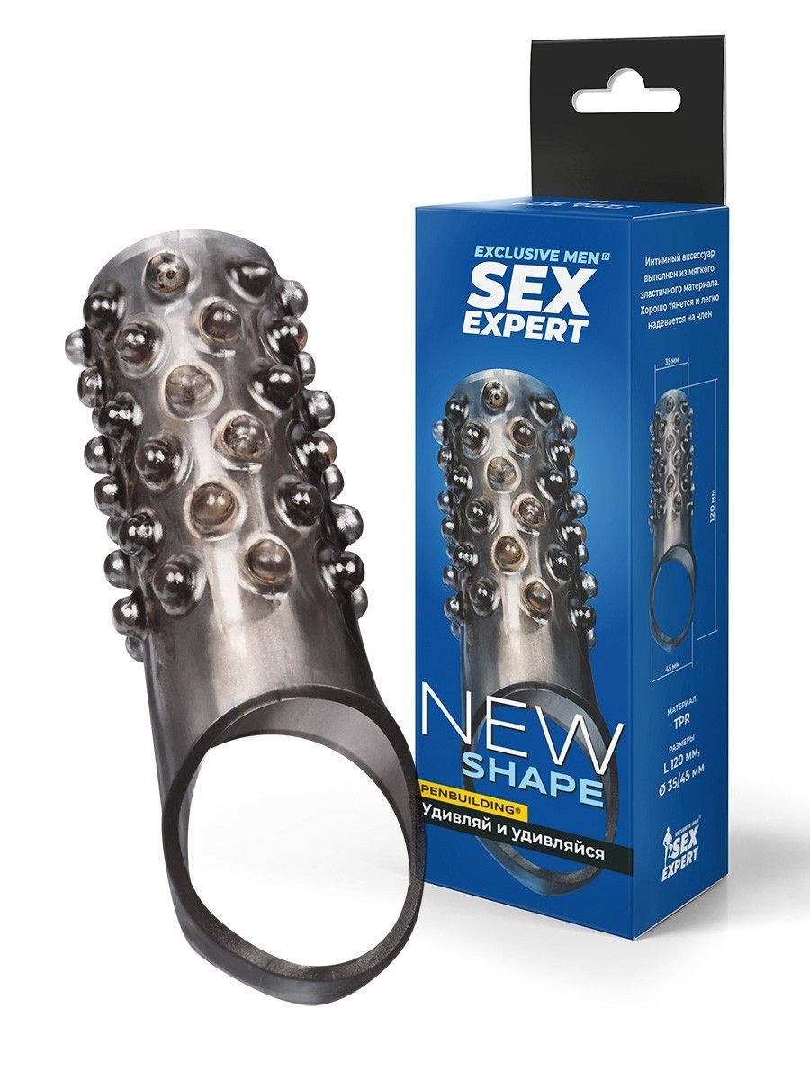 -----Дымчатая насадка на пенис с выпуклостями - 12 см.