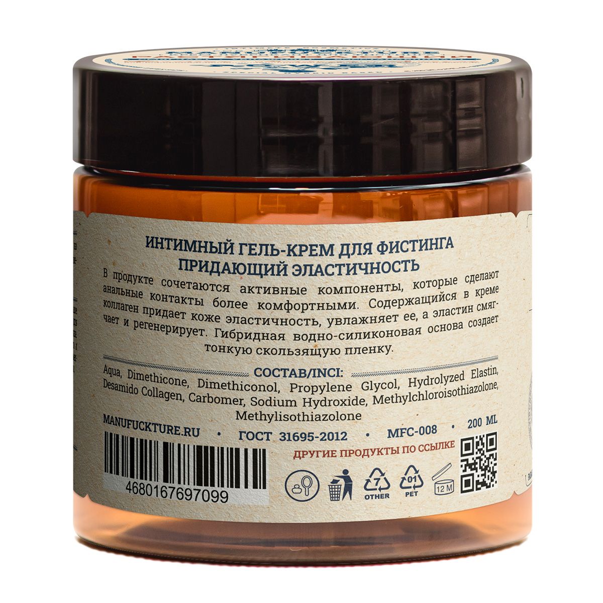 Гель-крем для фистинга, обладает мощным растягивающим эффектом, при этом помогает сохранить эластичность кожи. Специально разработанная формула с максимальным скольжением сделает процесс реализации смелых фантазий легким и комфортным. В составе средства сочетаются активные компоненты. Содержащийся в креме коллаген придает коже эластичность, увлажняет ее, а эластин смягчает и регенерирует. Гибридная водно-силиконовая основа создает тонкую скользящую пленку. Для людей с самой богатой фантазией! Совместим с любыми презервативами и интимными игрушками, легко смывается водой.