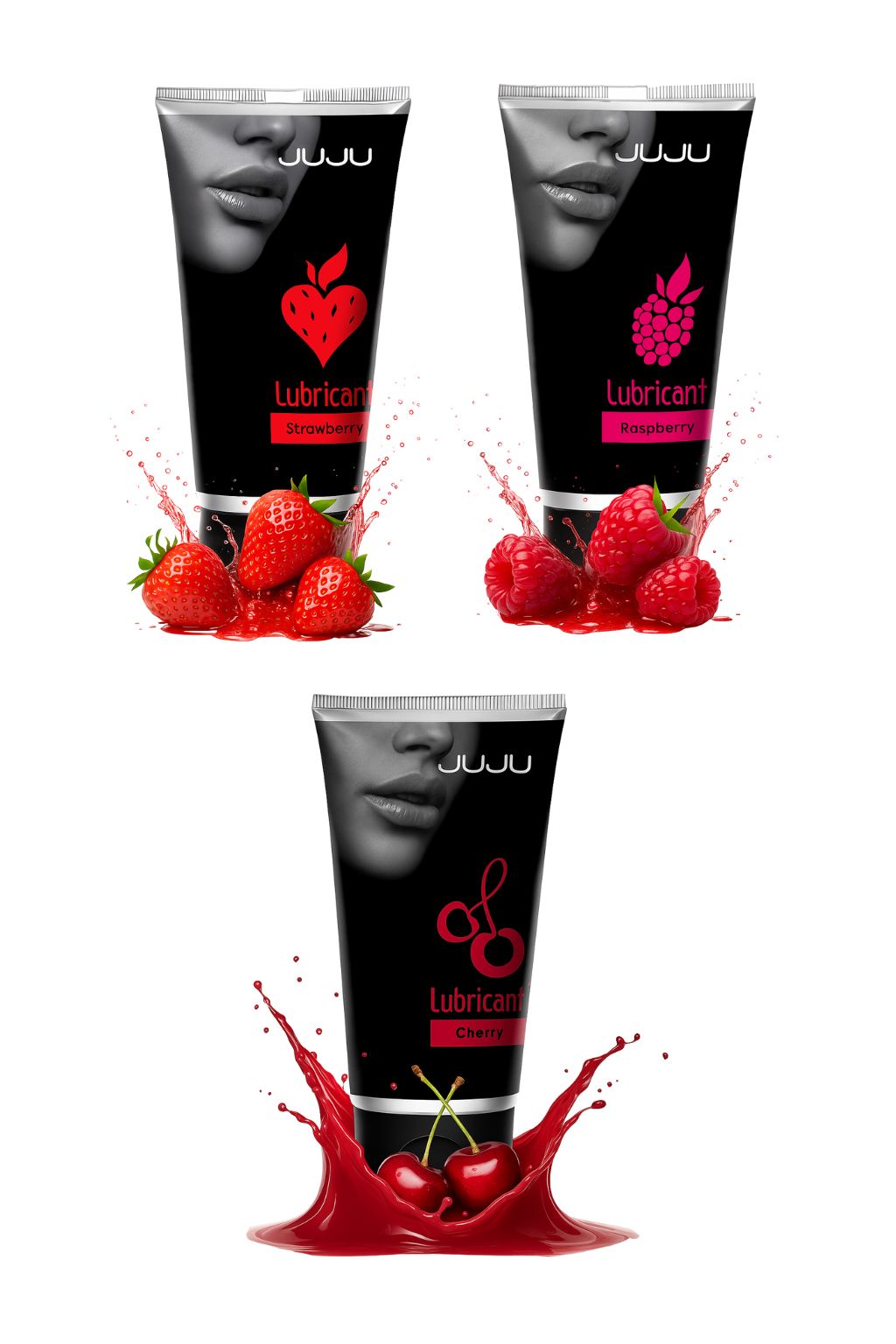 -----Набор из 3 съедобных лубрикантов JUJU (клубника, малина, вишня)