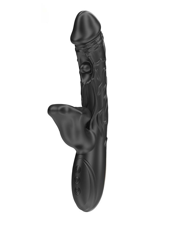Черный вибратор с режимами колебаний и посасывания - 23,5 см. - lovestoryshop.ru