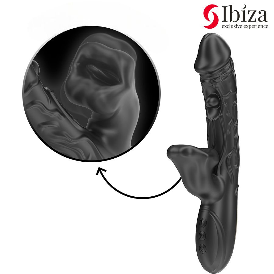 Черный вибратор с режимами колебаний и посасывания - 23,5 см. - lovestoryshop.ru