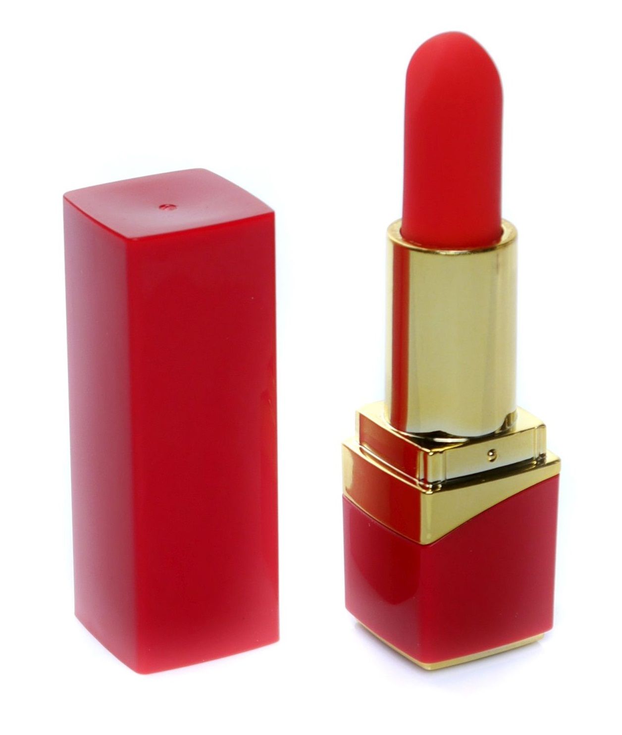 Красный мини-вибратор в форме помады - lovestoryshop.ru