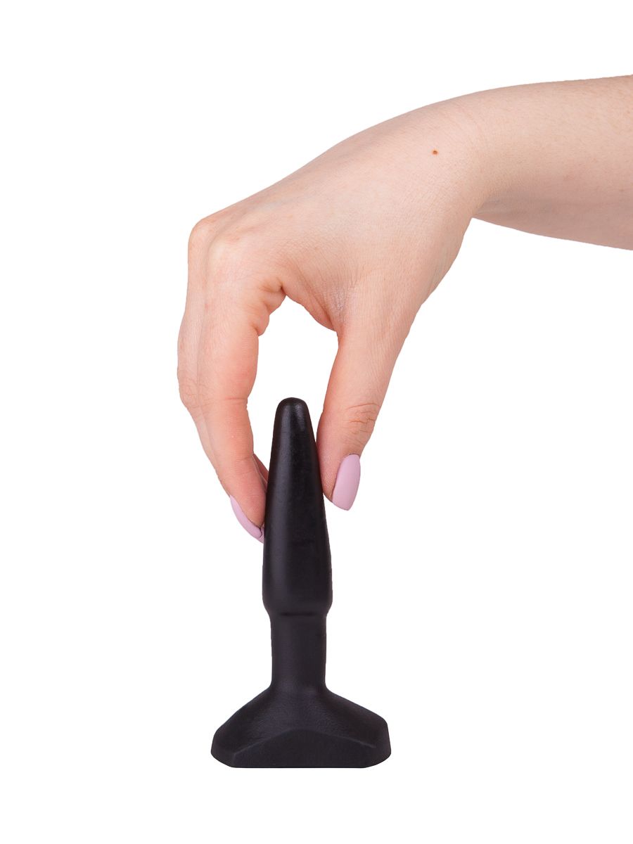 Этот чёрный плаг классической конусообразной формы – идеальное решение для тех, кто только начинает своё знакомство с миром анального секса. Небольшие размеры пробочки и гладкая бесшовная поверхность гарантируют комфортное проникновение в анус и плавное его заполнение. Широкое основание служит и для ограничения глубины проникновений, и для устойчивости при установке игрушки на твёрдую плоскость. Рабочая длина - 9,5 см.