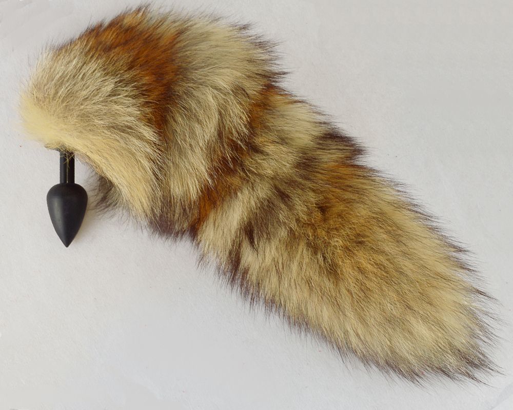 Черная анальная пробка с пушистым рыжим хвостиком - lovestoryshop.ru