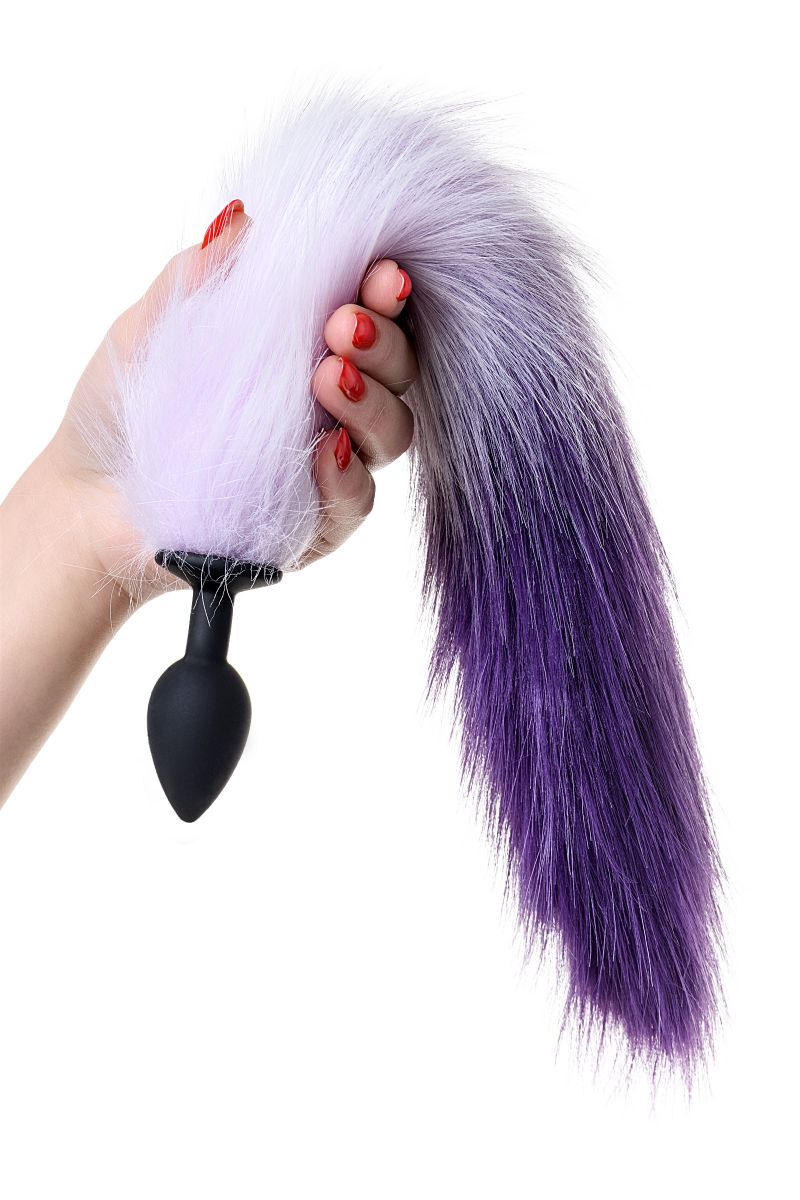 Силиконовая анальная пробка с бело-фиолетовым хвостом Popo Pleasure S - lovestoryshop.ru