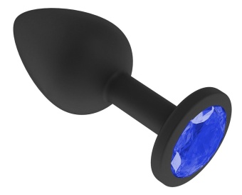 Чёрная анальная втулка с синим кристаллом - 7,3 см.