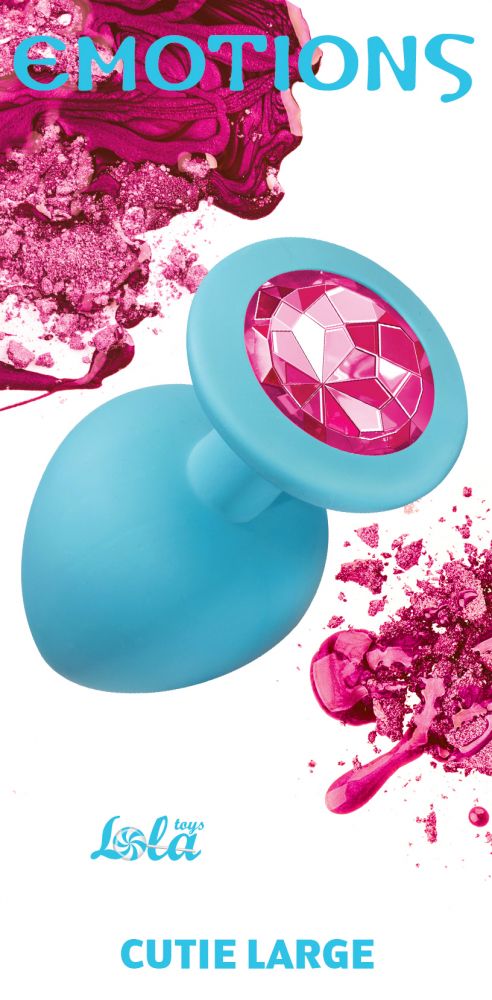 Большая голубая анальная пробка Emotions Cutie Large с розовым кристаллом - 10 см.
