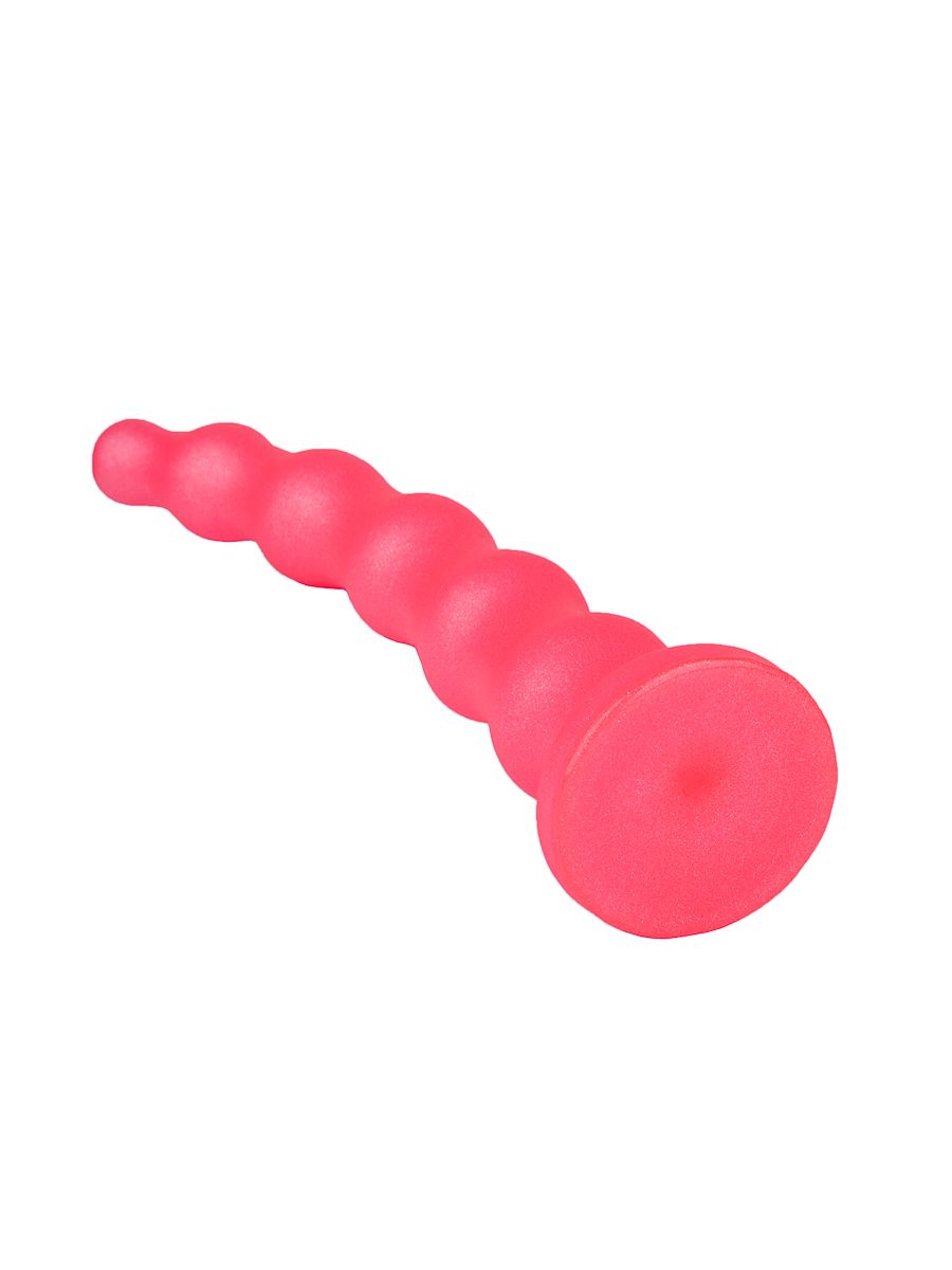 Розовый гелевый анальный стимулятор. Форма в виде шариков. Материал эластичный, в меру жесткий, но упругий.