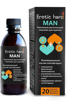 Биогенный концентрат “Erotic hard” MAN рекомендуется мужчинам для повышения либидо, сексуальности, физической выносливости, увеличения продолжительности полового акта, профилактики воспалительных и инфекционных заболеваний мочеполовой системы, поддержания уровня тестостерона и репродуктивной функции, улучшения настроения, работоспособности и уменьшения депрессивных состояний.