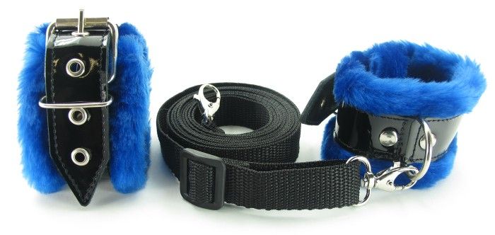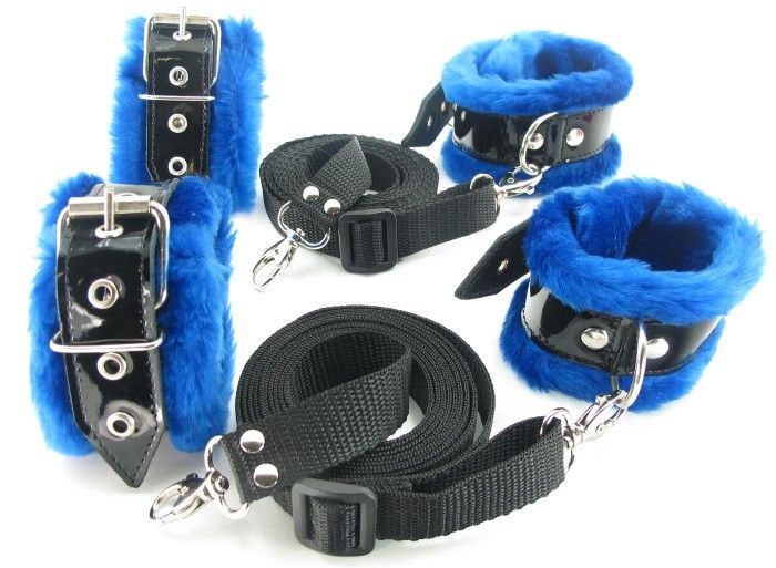 Набор на кровать с синим мехом BDSM Light