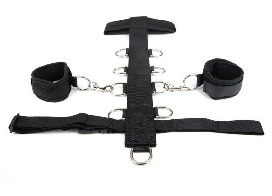 Использовать аксессуар можно так, как захочет ваша фантазия: закрепите его на талии и шее, прицепив руки партнера к одной паре колец из 4 рядов. Либо отсоедините стропу и фиксаторы, поместите их на ноги – придумывайте самые разные позы. В каждой из них вашему партнеру будет комфортно ровно на столько, насколько нужно. Ведь каждый элемент набора изготовлен из мягких материалов.