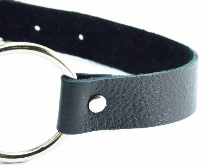 ОписаниеЧерный кожаный кляп с кольцом. Застегивается сзади на пряжку.