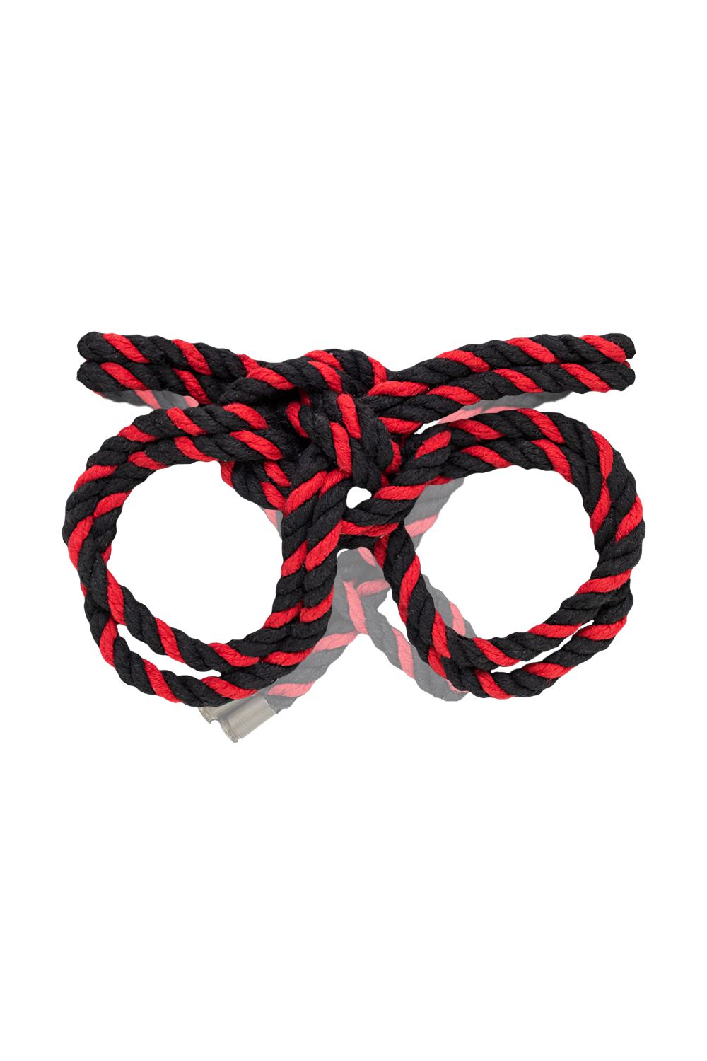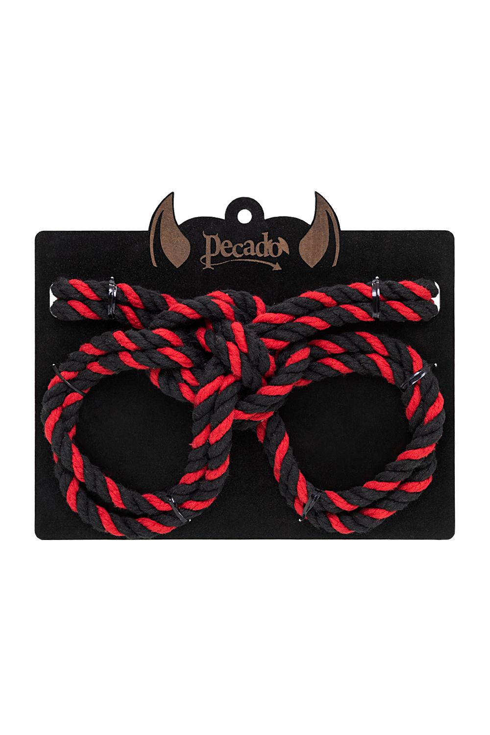Наручники-оковы из хлопковой веревки Pecado BDSM Узел-омега черно-красные