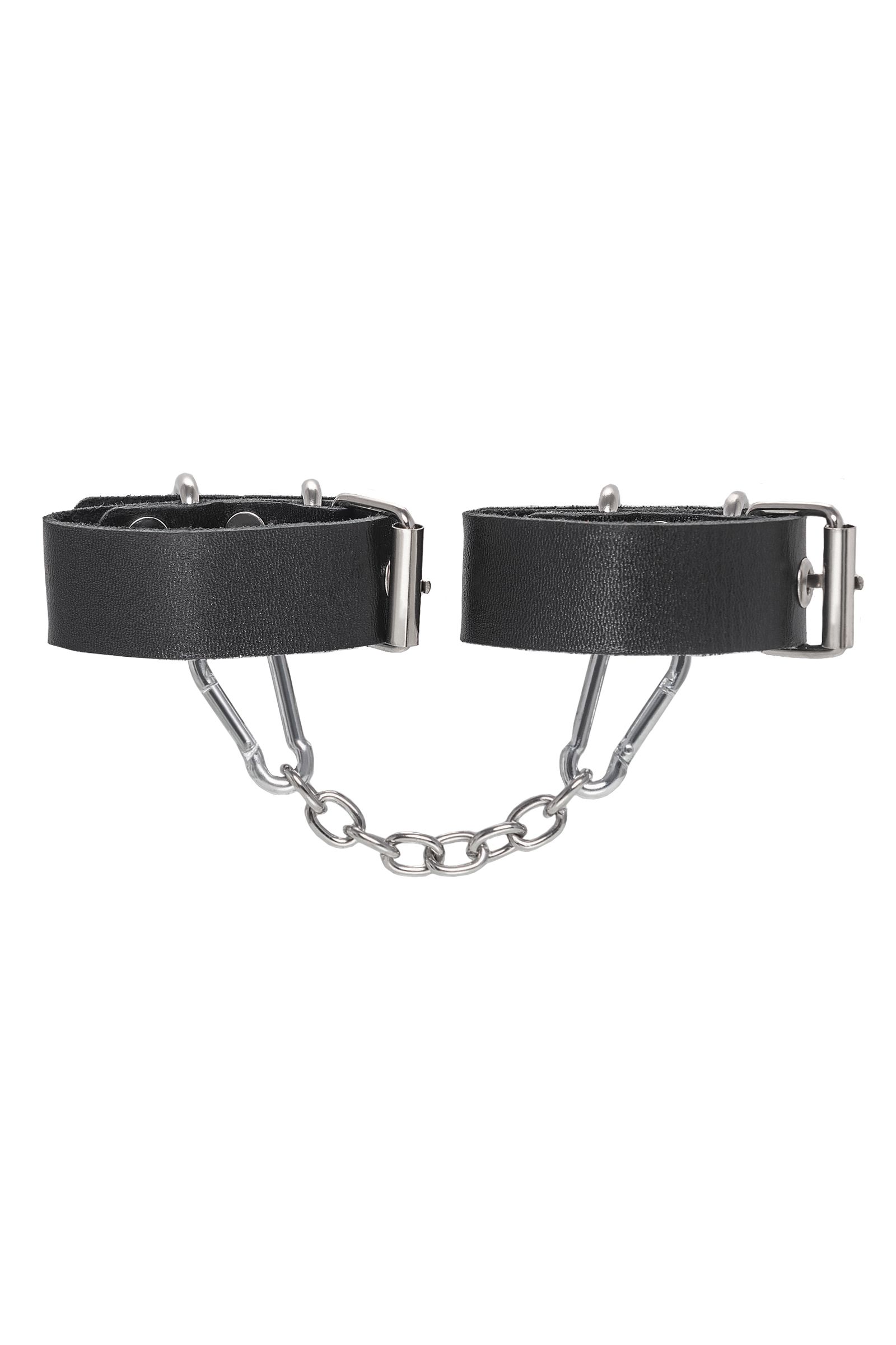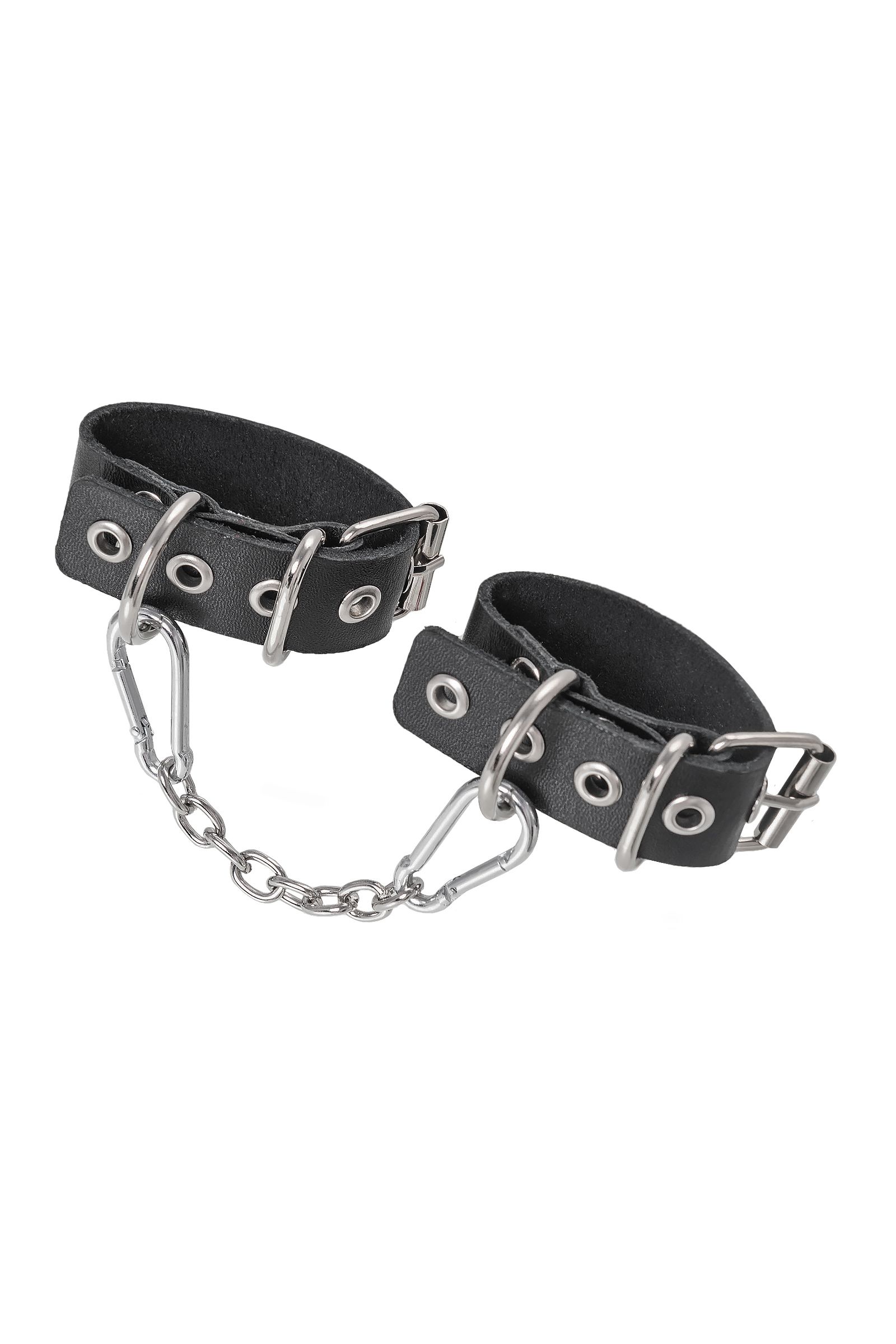 Брутальные наручники из одного ремешка от Pecado – отличный подарок партнеру к любому случаю. Во-первых, они незаменимая вещь для жестких ролевых игр. Во-вторых, отличный аксессуар-браслет на руку для повседневного и тематического look-а.Сексуальный атрибут изготовлен российским производителем. Специальная технология выделки кожи обеспечивает хорошую износостойкость. Черный материал прекрасно прилегает к телу и не оставляет следов. Подходят и мужчинам, и женщинам. Наручники декорированы большими стальными кольцами. Металлическая фурнитура высокого качества обеспечивает надежную фиксацию. Манжеты фиксируются между собой благодаря съемной, короткой цепочке. Длина ремешка – 23,5 см, ширина - 2,5 см.