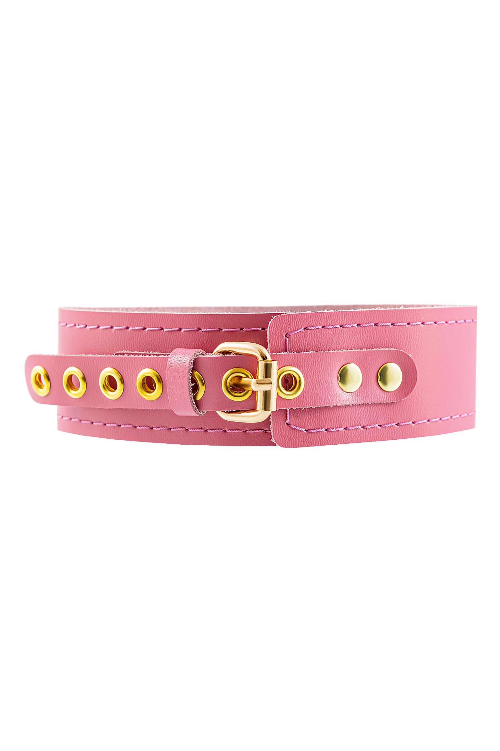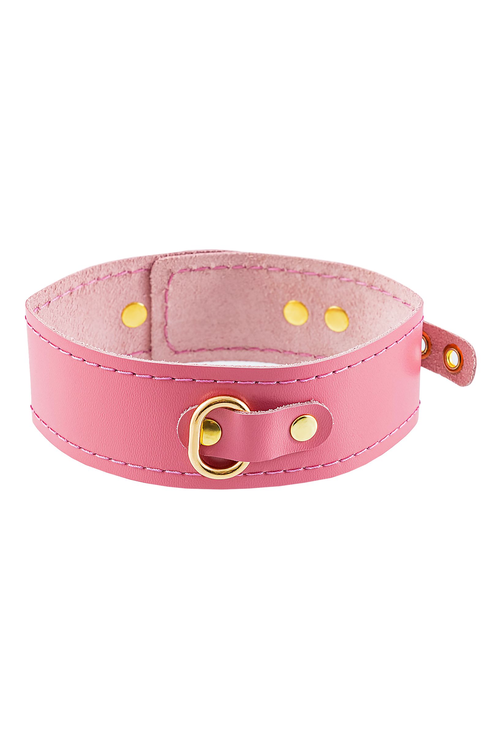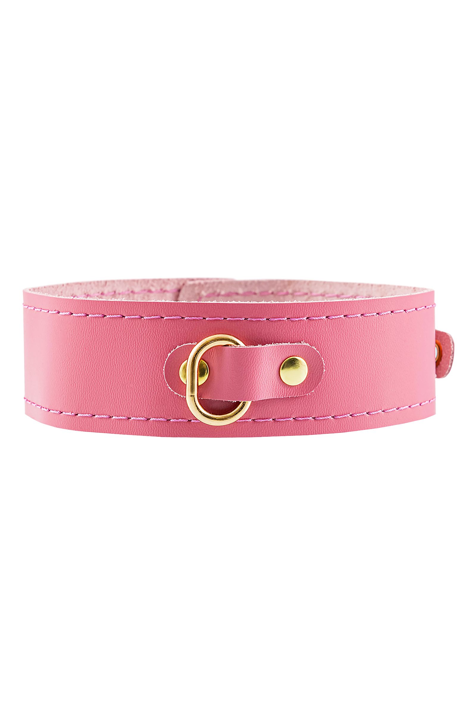 Розовый кожаный однослойный ошейник с прошивкой