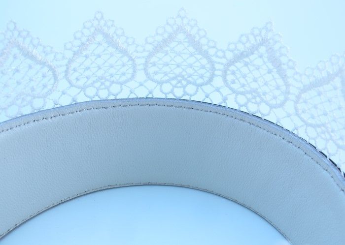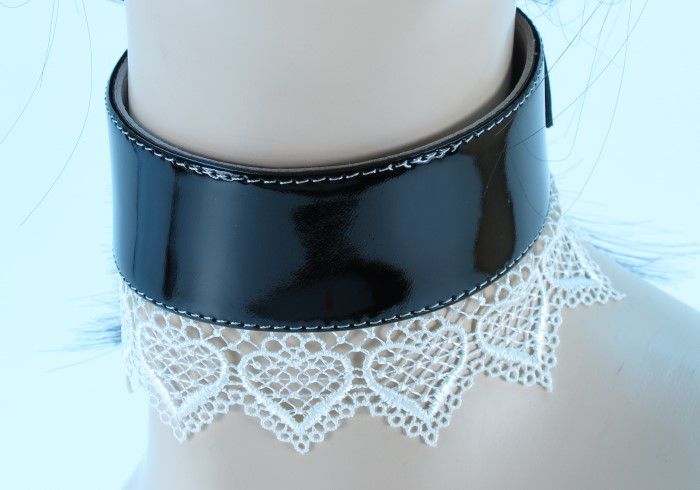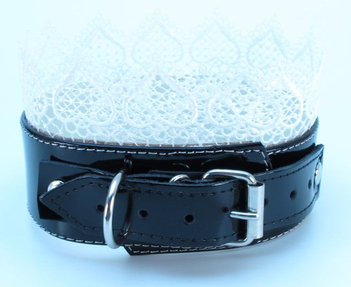 ОписаниеИзящный чёрный ошейник с белым кружевом.