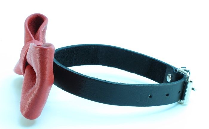 Черный ошейник с красной бабочкой идеально подойдет как для мужчин, так и для женщин. В ошейник вставлено D-кольцо, с которым фетиш-изделие соединяется с бандажом или поводком. Ширина ошейника - 1,5 см., бабочки - 6 см.