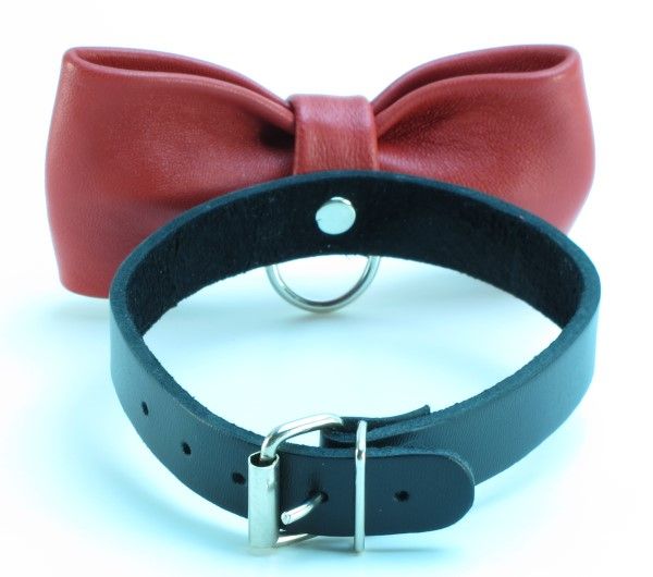 ОписаниеЧерный ошейник с красной бабочкой идеально подойдет как для мужчин, так и для женщин. В ошейник вставлено D-кольцо, с которым фетиш-изделие соединяется с бандажом или поводком. Ширина ошейника - 1,5 см., бабочки - 6 см.