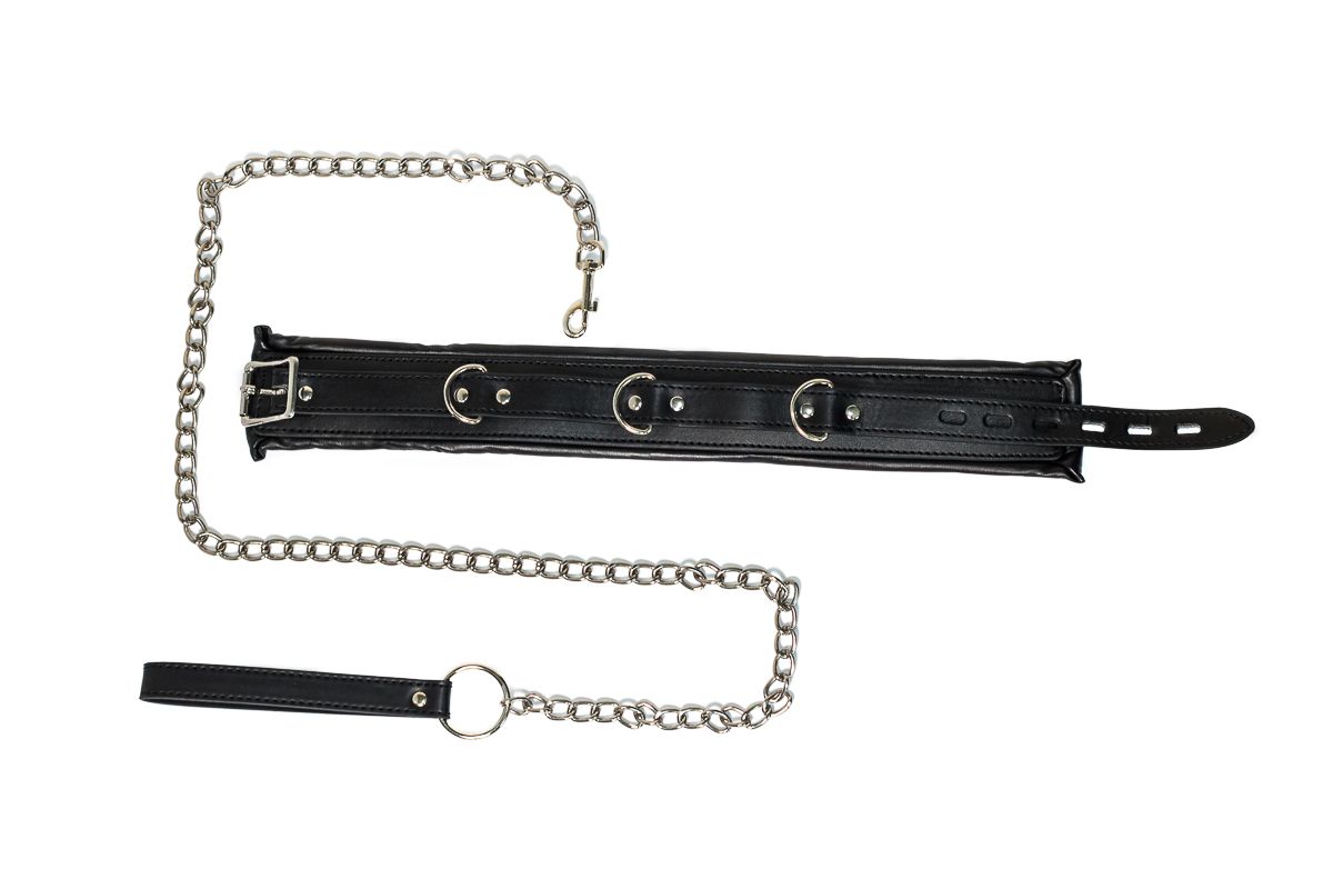 С нашими эффектными БДСМ-наборами вы точно не заскучаете. Развлекайтесь и получайте удовольствие от новых ощущений. Прекрасные атрибуты обострят ваши чувства и увеличат страсть. Ошейник регулируемый и с поводком. Ширина - 6 см. Длина поводка - 125 см.