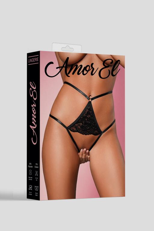 Открытые трусики Amor El выполнены из кружева и эластичных лент — они дополнят любой соблазнительный вечер наедине с вашим партнером. Белье создает эротический образ, подчеркивая бедра и талию, и ничего не скрывают: интимный вырез снизу позволит вам насладиться возбуждающей близостью с партером, как только вы этого захотите.
