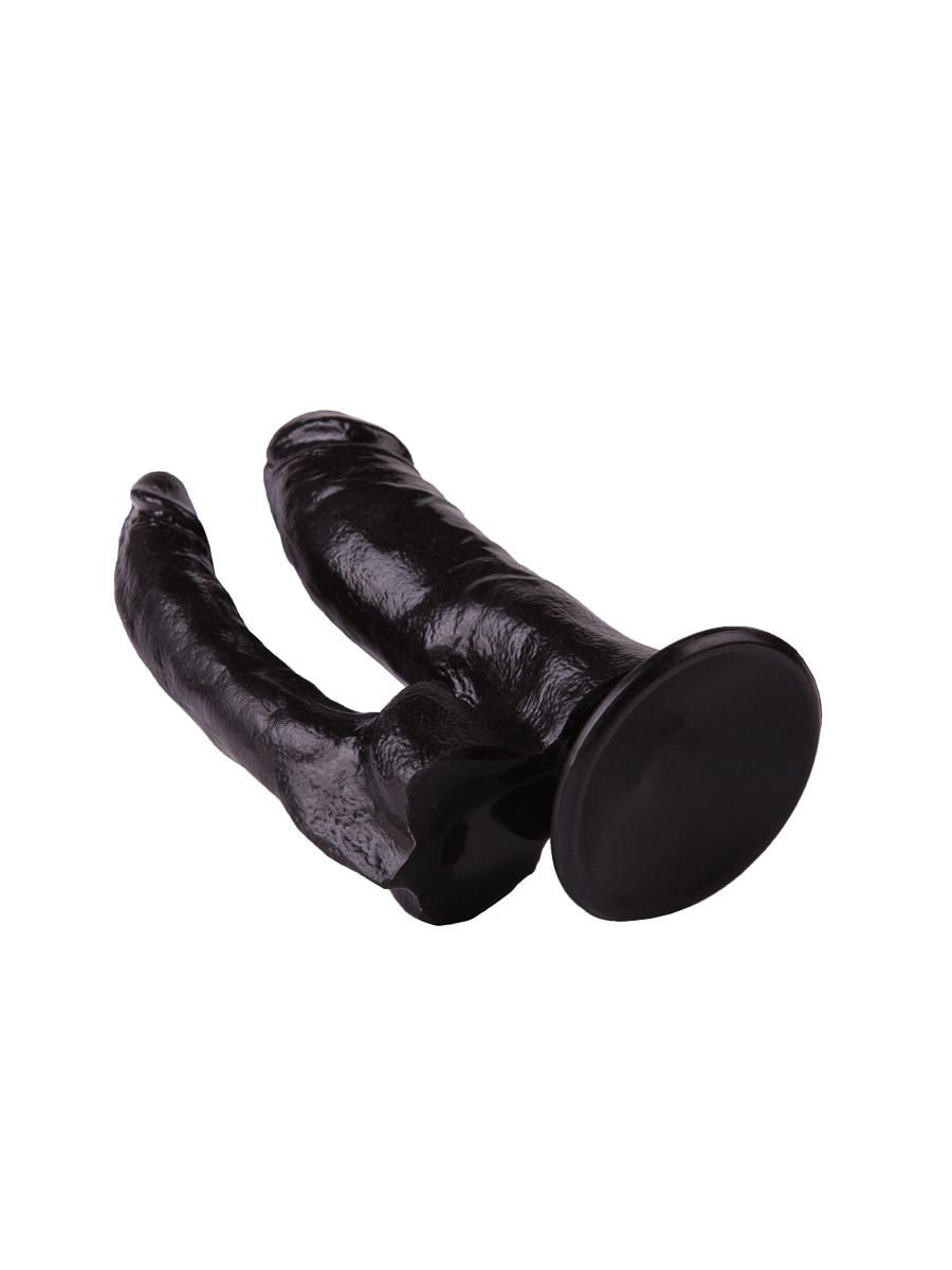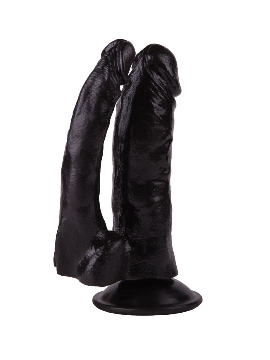 Двойной чёрный фаллоимитатор на присоске - 15 см.