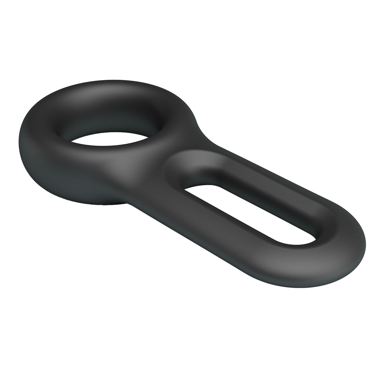 Черное эрекционное кольцо Oniel с петлёй для мошонки - lovestoryshop.ru