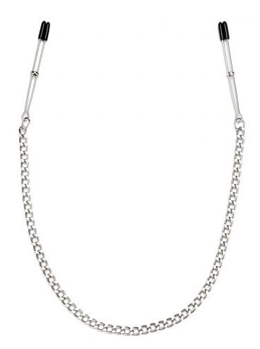 Металлические зажимы регулируются при помощи небольшого колечка. Кончики аксессуара покрыты более мягкой резиной для комфортного использования. Внизу зажимы соединены небольшой металлической цепочкой для дополнительного элемента игры: когда она прикасается к коже вы будете ощущать лёгкий холодок, а ещё её можно слегка потянуть, добавив болевых ощущений.