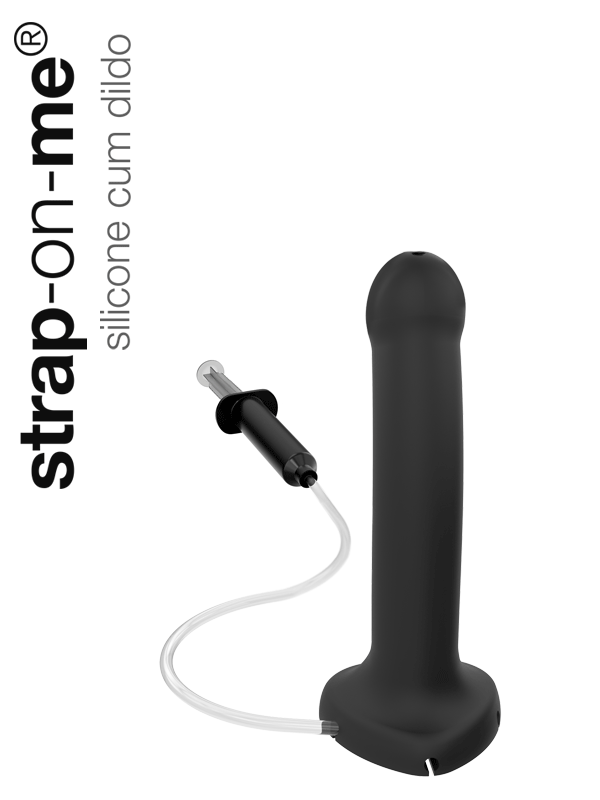 Фаллоимитатор с эффектом семяизвержения Strap-on-me имеет в основании удобную присоску, которую можно закрепить на плоской поверхности или же к трусикам для страпона с соответствующим креплением. Фаллоимитатор выполнен из медицинского силикона и дополнен специальной трубочкой и небольшой ёмкостью 30 мл для введения жидкости — это может быть специальный лубрикант, имитирующий сперму, или же обычная вода. Длина трубочки 82 см.