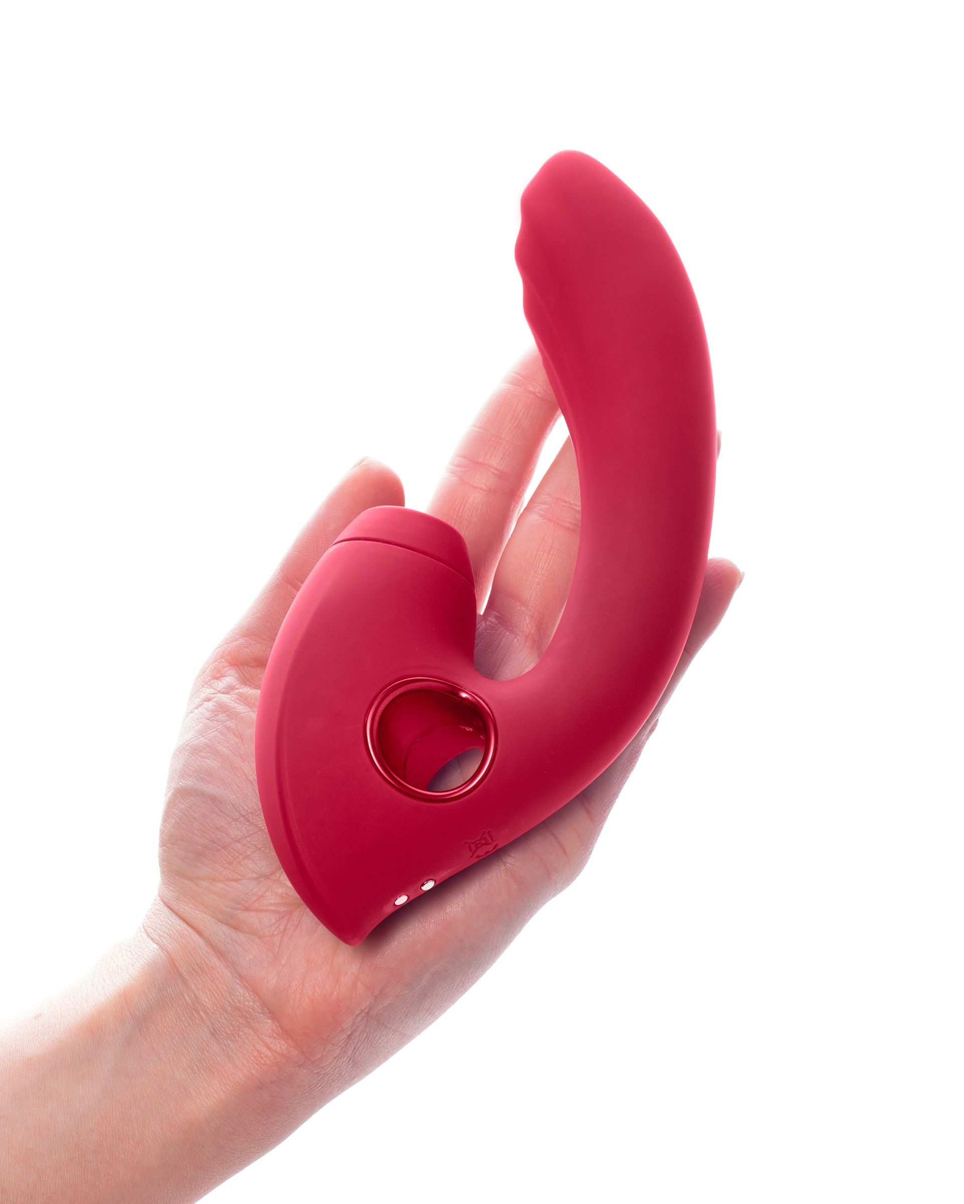 Красный вибратор с вакуум-волновым стимулятором клитора Grace