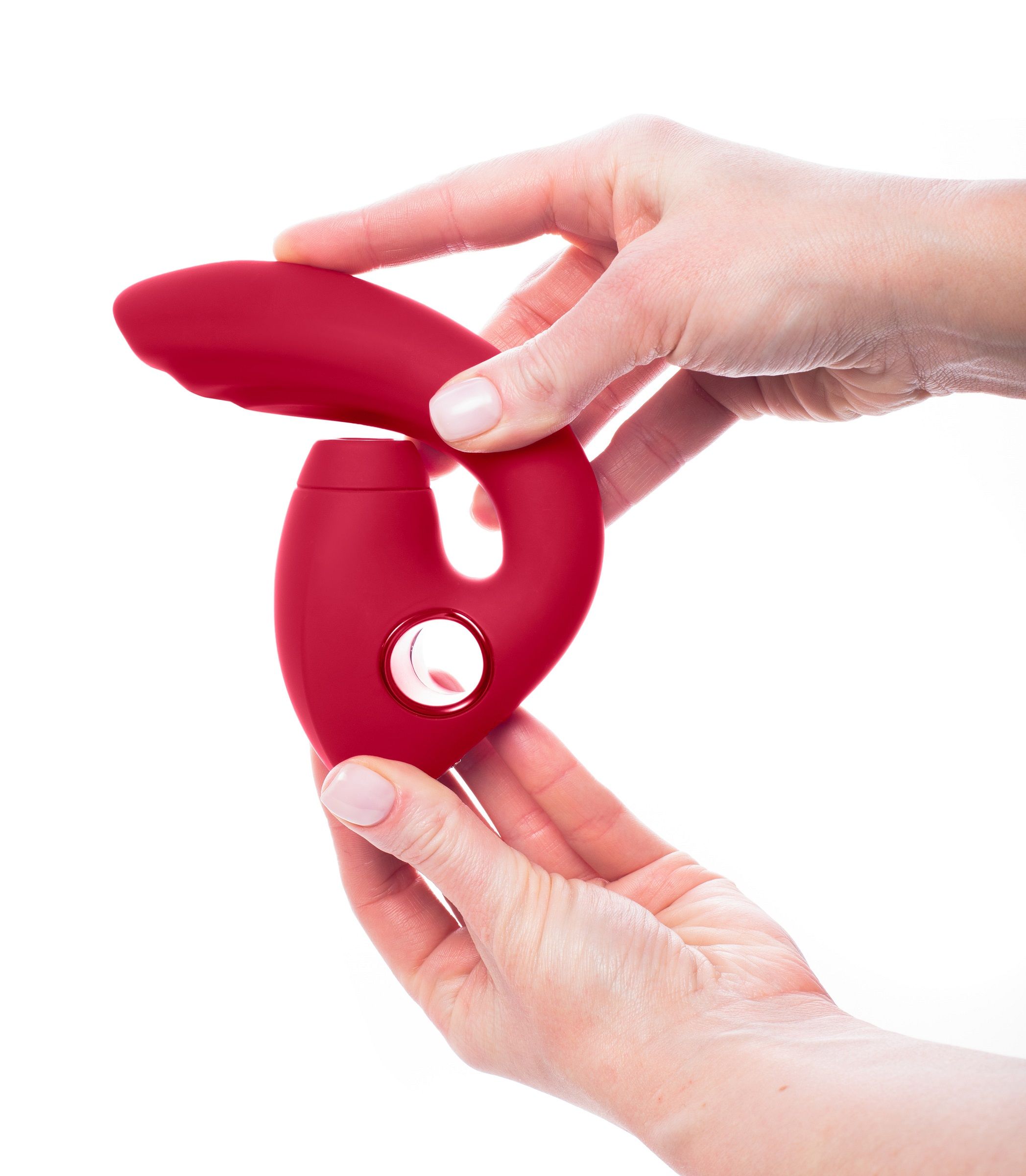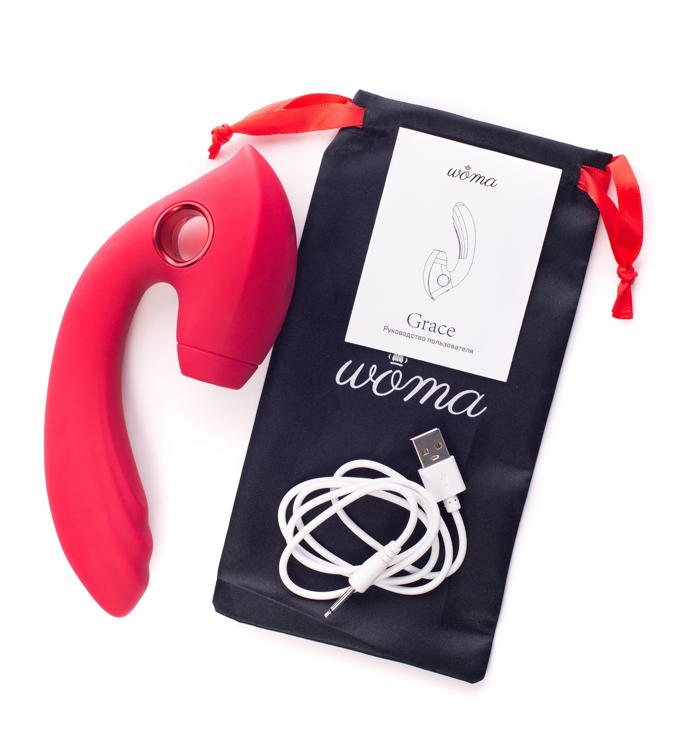 Woma Grace — игрушка, обеспечивающая одновременно вакуумно-волновую стимуляцию клитора и вибрации в точке G. Моторы Grace управляются по отдельности, что позволяет создавать уникальные сочетания режимов работы игрушки, которые понравятся именно вам. Вагинальная часть Grace гибкая, поэтому вы легко сможете подстроить игрушку под особенности своей анатомии.