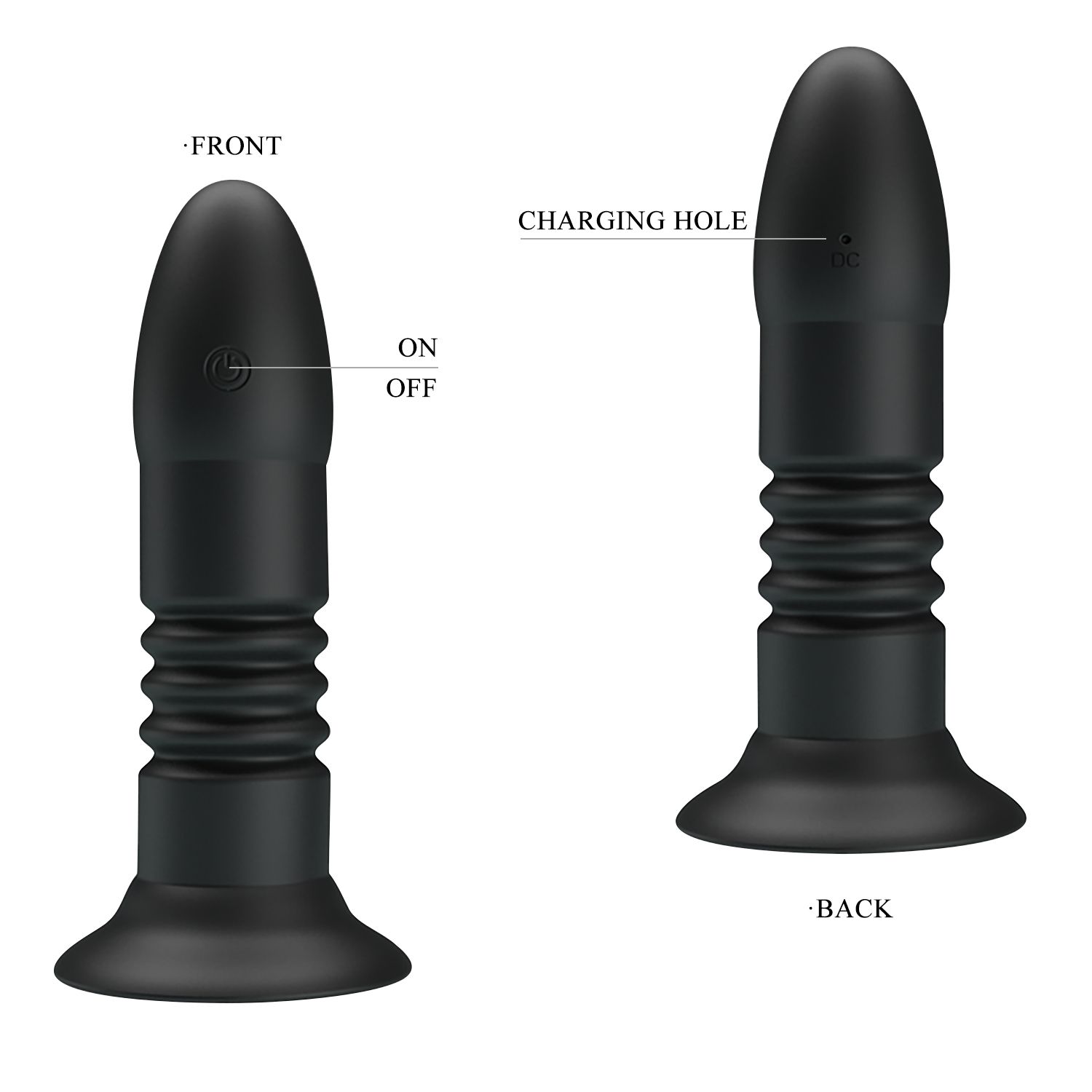 Черный анальный вибростимулятор с пультом ДУ - 13,8 см. - lovestoryshop.ru