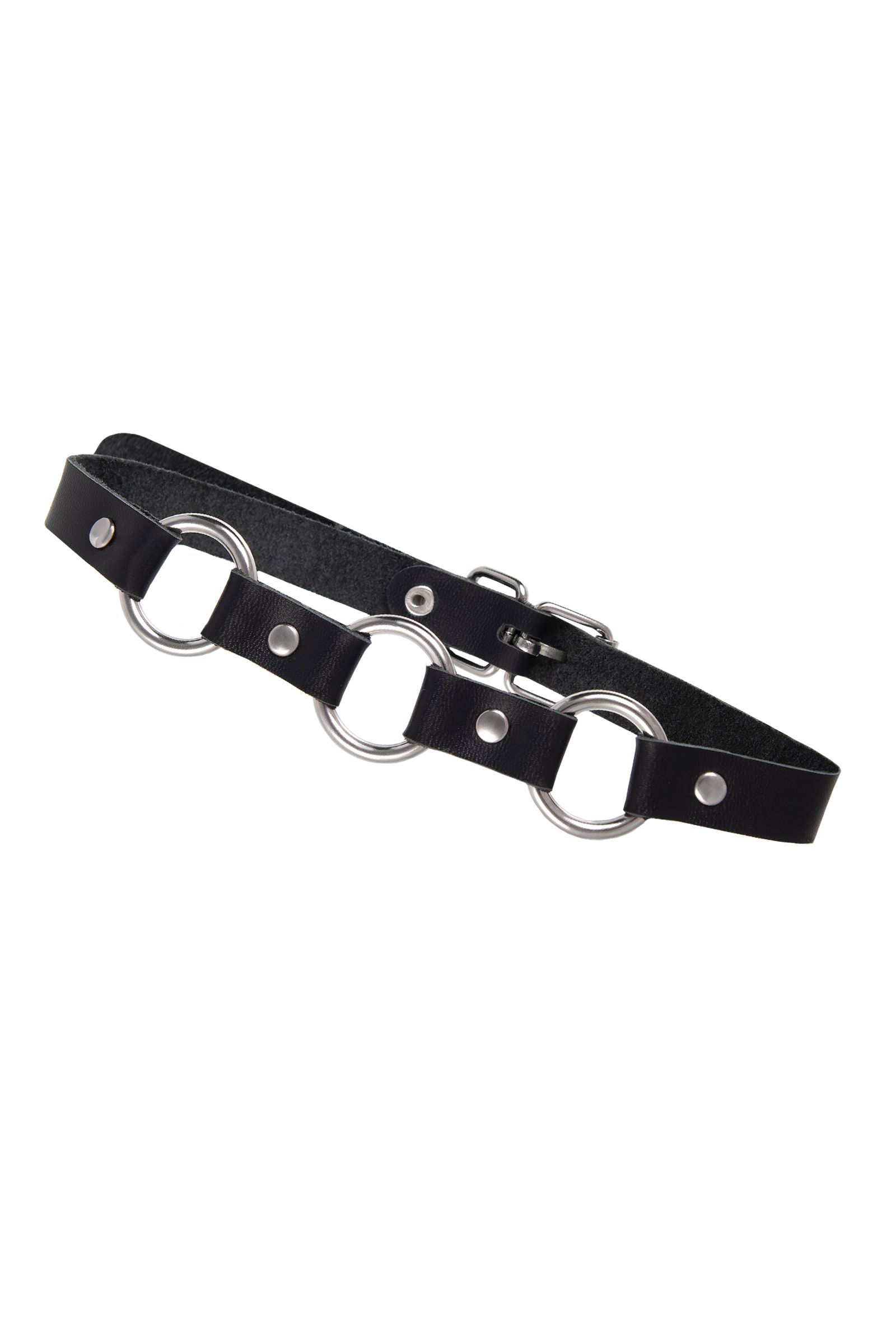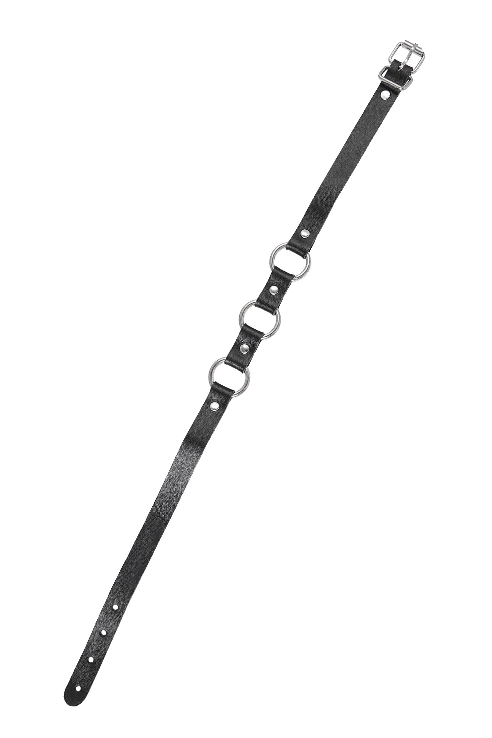 Черный кожаный чокер-ошейник с тремя кольцами