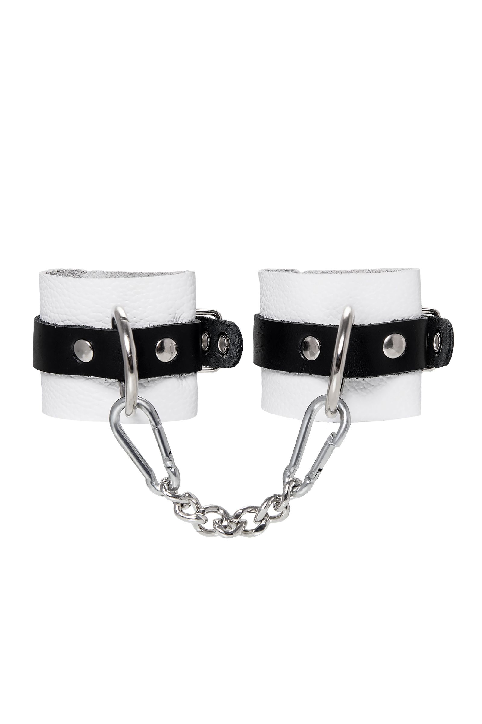 Готовы играть по-взрослому? Не бойтесь своих желаний! Основатели бренда уверены: лучший способ избавиться от искушения - поддаться ему! Добавьте пикантную деталь в ролевую игру и воплотите самую смелую сексуальную фантазию в реальность! Эти мягкие, белые, кожаные наручники с люверсами на жёстких, чёрных ремешках могут стать стильным аксессуаром, а могут послужить вашим целям по своему прямому назначению. Частичное обездвиживание и невозможность двигать руками дают вам полную власть над партнером – взрослые игры для взрослых. Наличие двух колец и карабинов, соединенных между собой металлической цепочкой, позволяет использовать изделие как раздельно – аксессуар-манжеты, так и как наручники для фиксации. К широким металлическим кольцам также можно присоединить и другие аксессуары при помощи карабинов. Благодаря универсальному размеру наручники могут использоваться и мужчинами, и женщинами. Размер легко регулируется с помощью металлических пряжек, органично вписывающихся в общий стиль. Длина манжет - 18 см, ширина - 5,5 см.